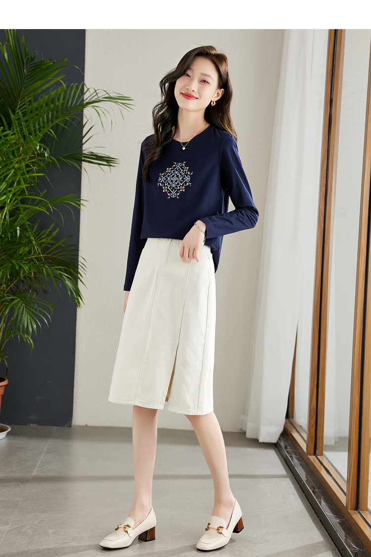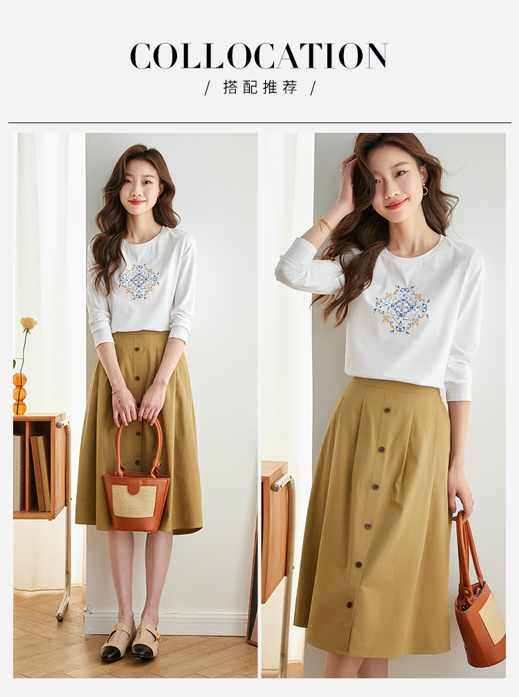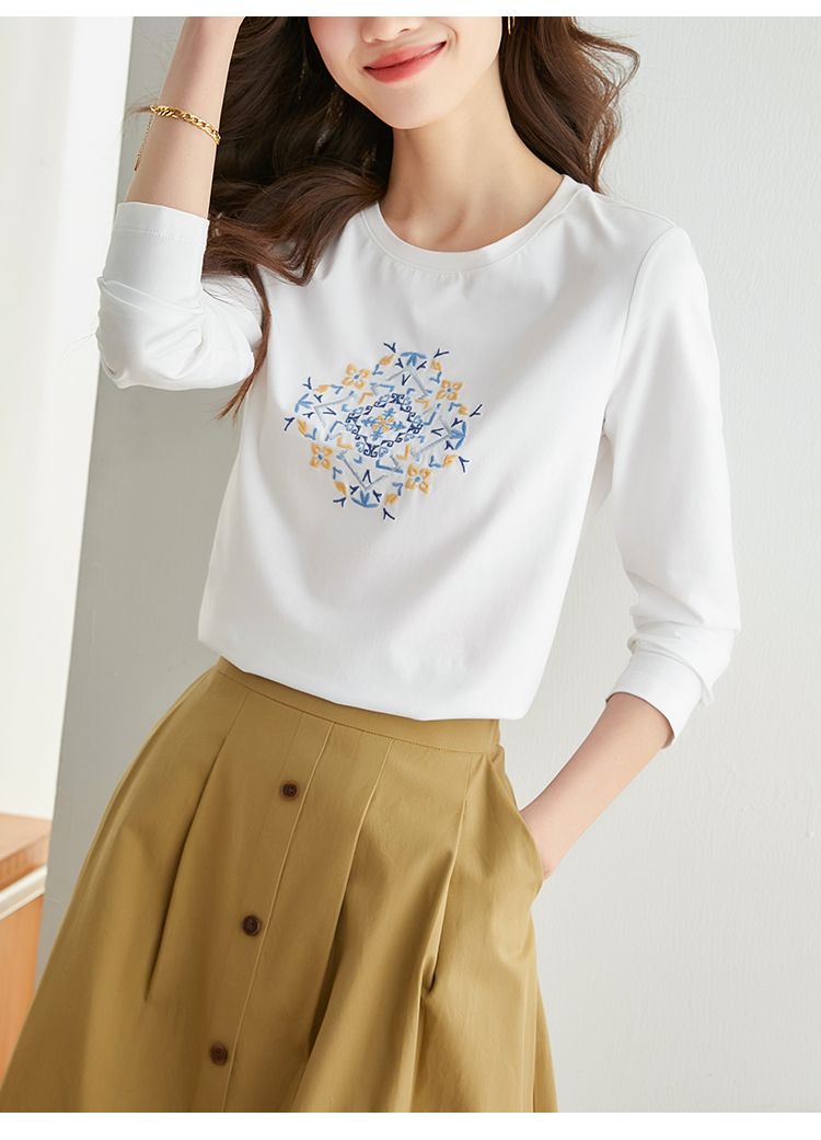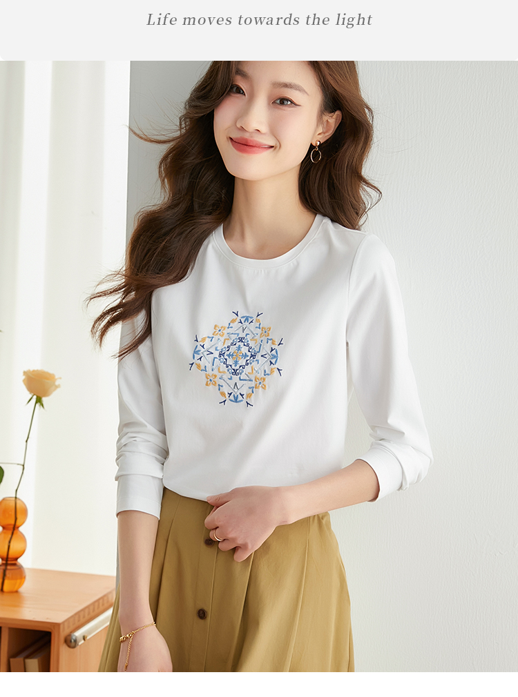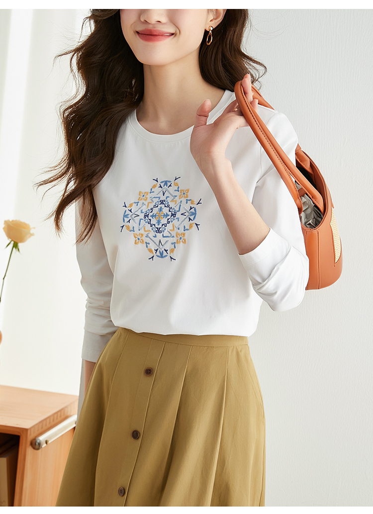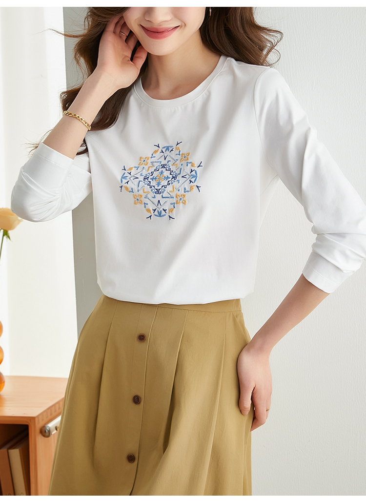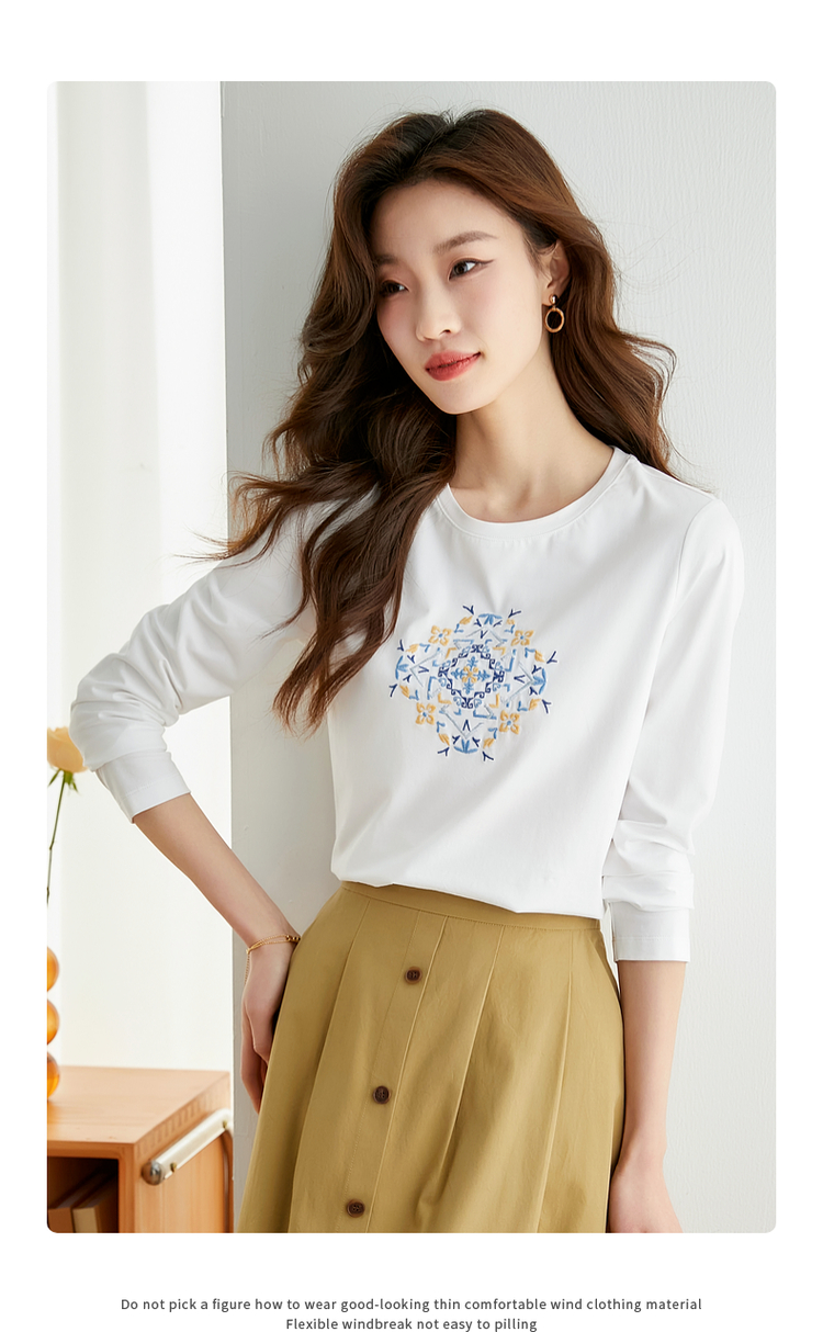 【专属特价】熙世界轻民族风复古刺绣T恤长袖2025秋季新款休闲圆领棉质上衣