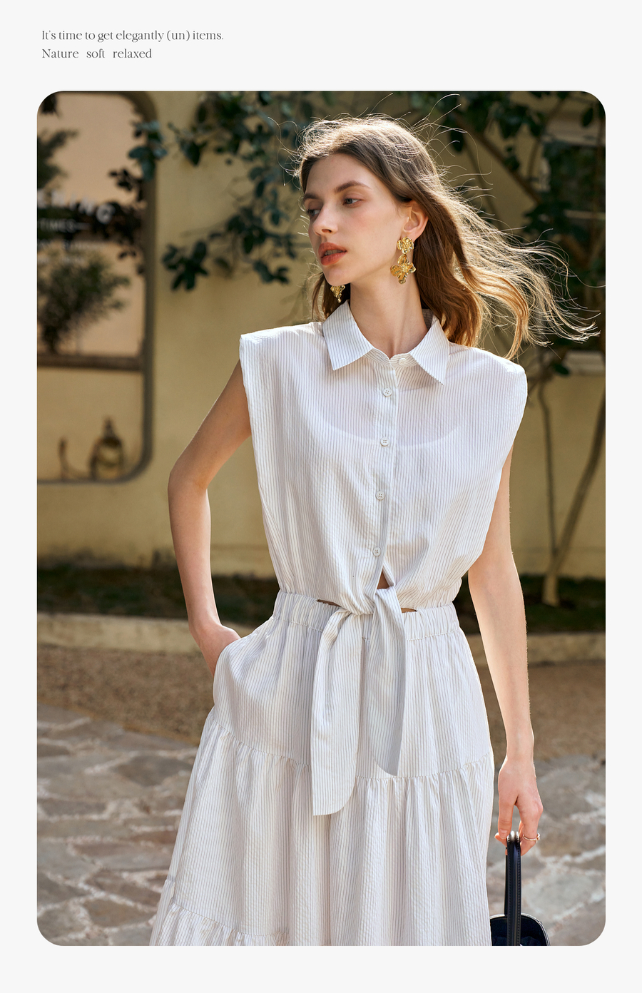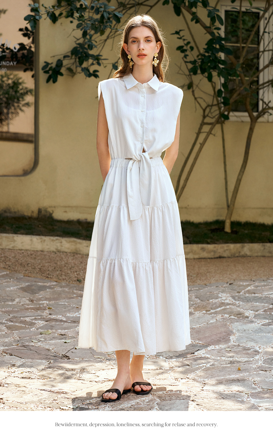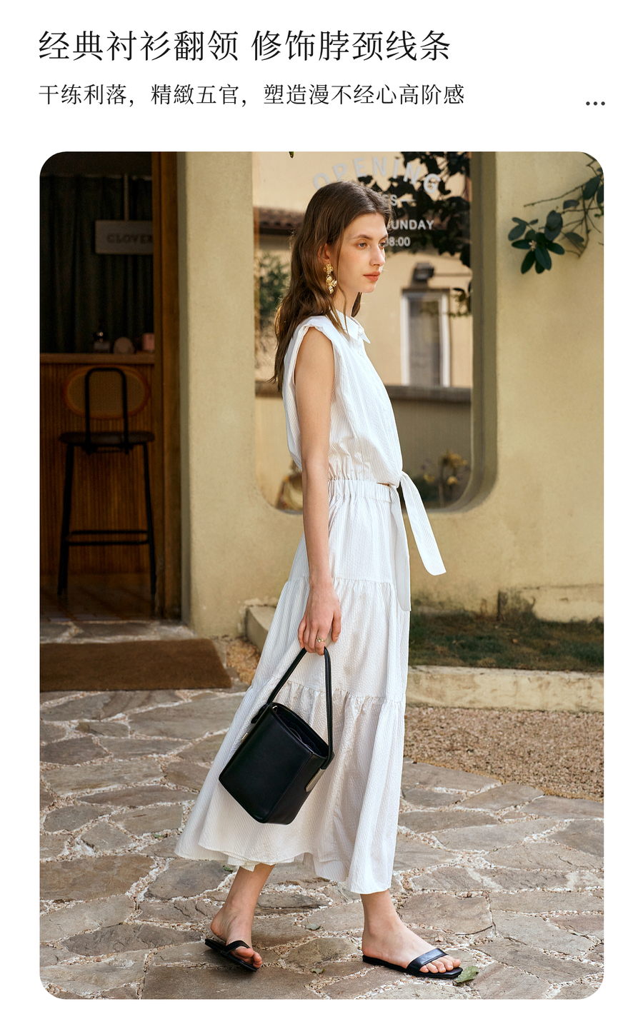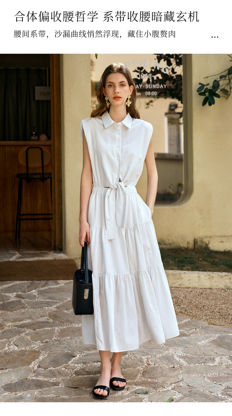 OLrain欧芮儿无袖翻领系带假两件连衣裙女夏季2025新款白色公主裙