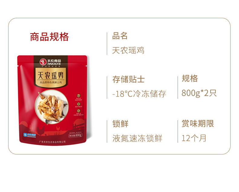 天农 瑶鸡800g*2只装贵州高原黑脚土鸡农场谷物喂养