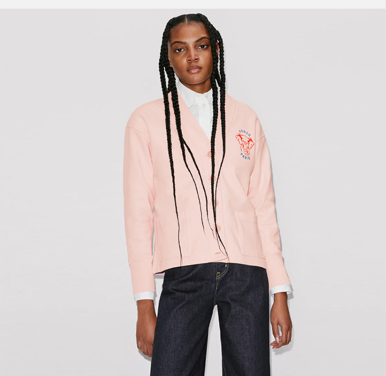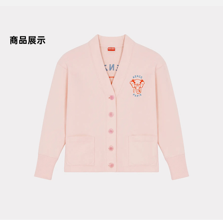 【二】KENZO 高田贤三 女士大象徽标印花棉质 V 领休闲开衫 粉色 FD62 SW094 4ME 34