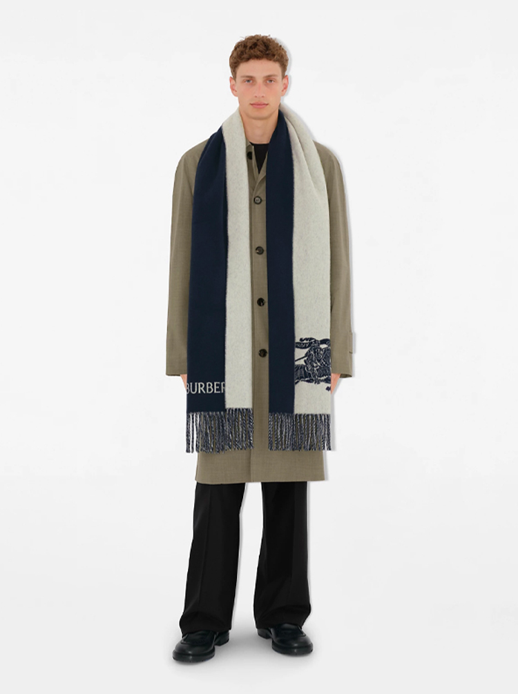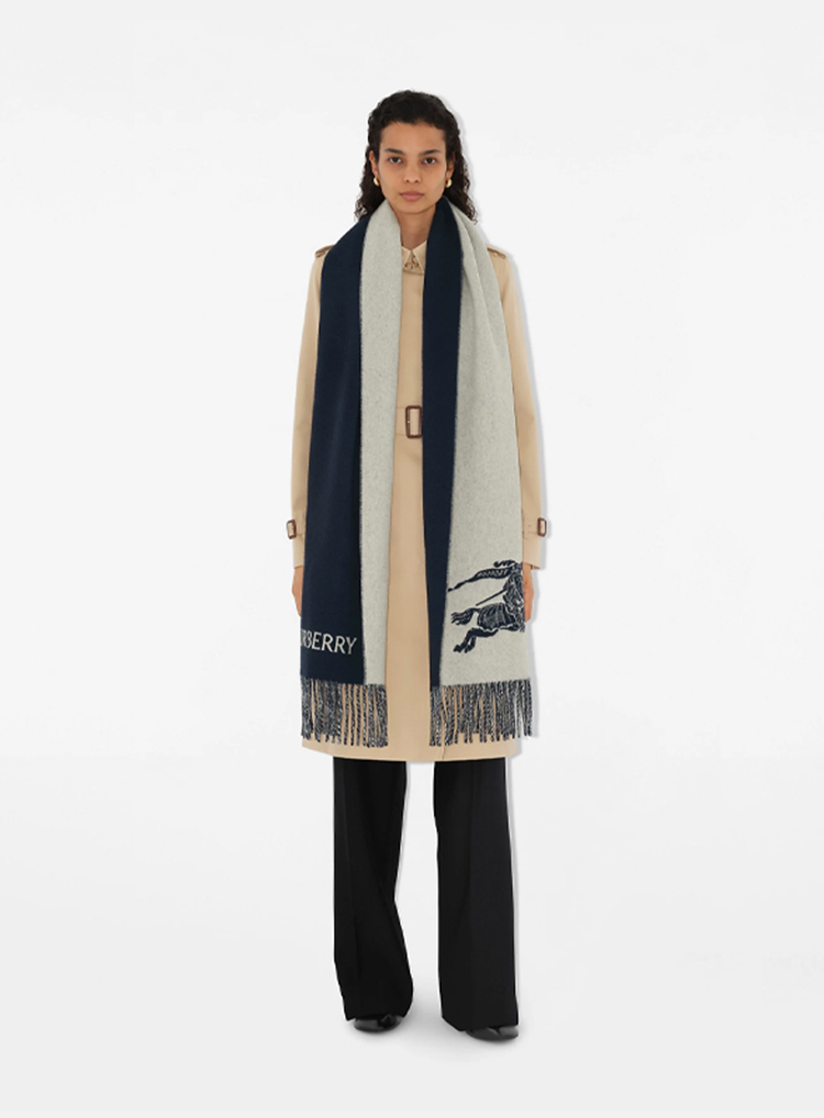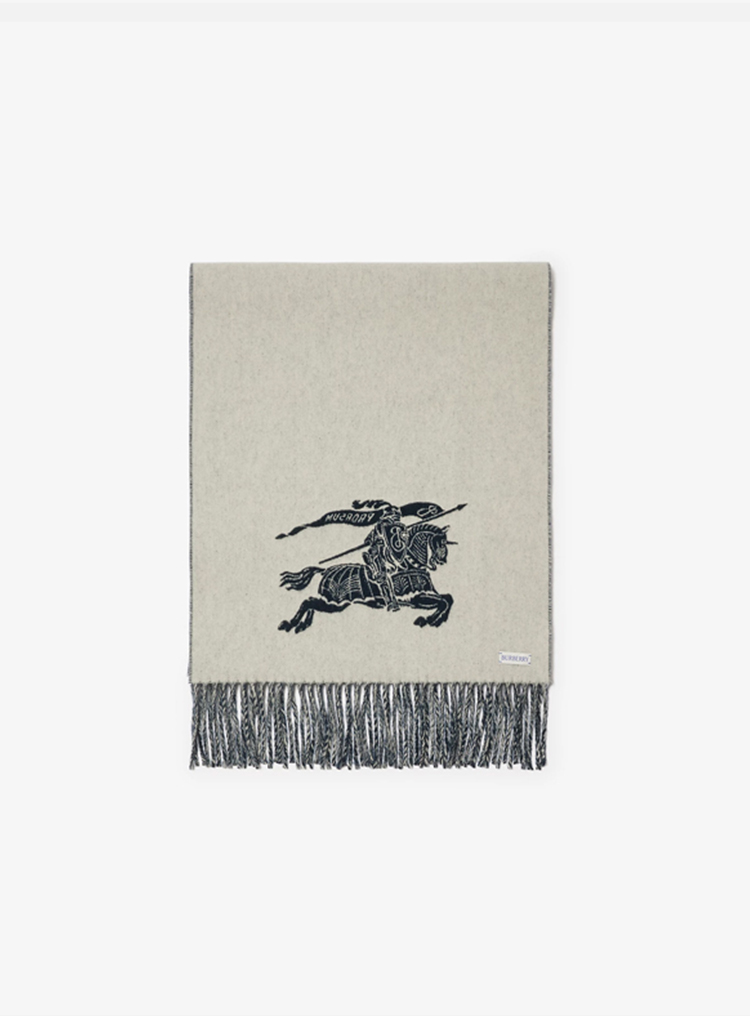 BURBERRY 巴宝莉 男女通用双面两用马术骑士徽标羊绒围巾 灰色 8095465 C1172
