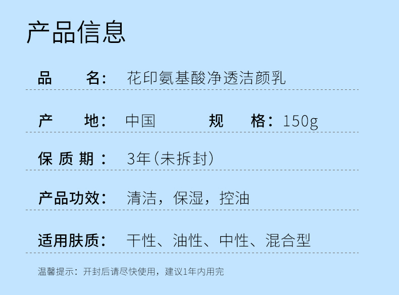 花印氨基酸净透洁面乳150g