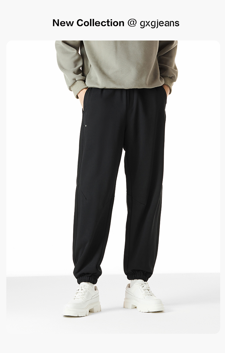 gxgjeans25春款男士休闲裤抽绳系带纯色休闲百搭束脚裤运动户外休闲卫裤K&C
