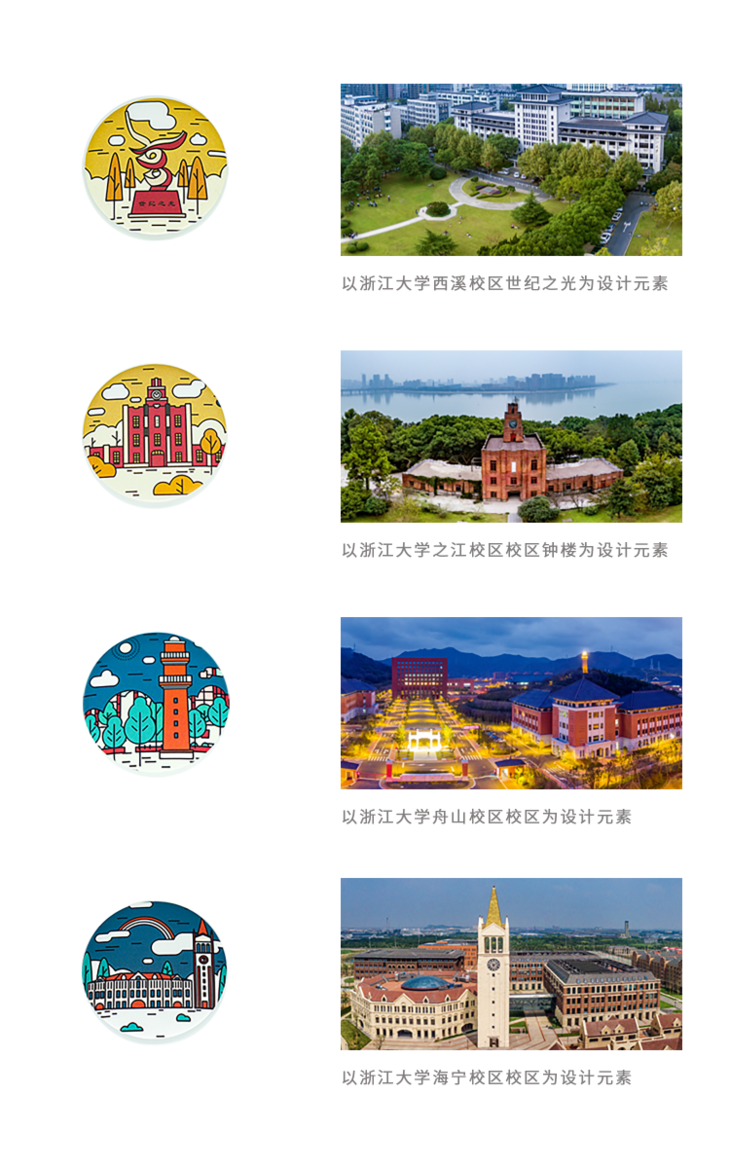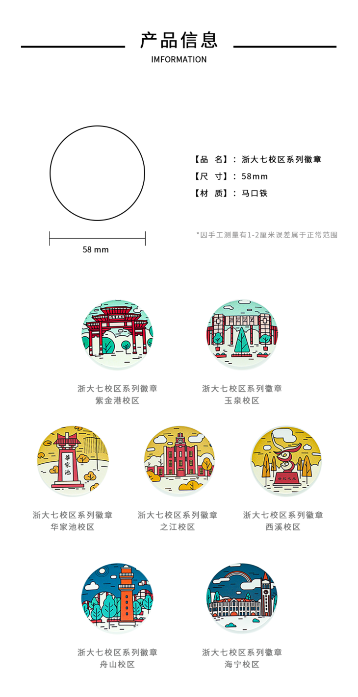 【浙大文创】浙江大学七校区经典建筑插画马口铁徽章