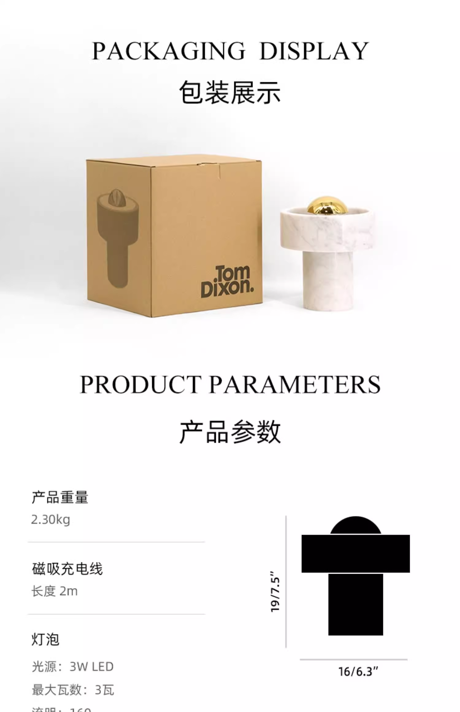 TomDixon大理石创意便携卧室台灯现代简约高级轻奢生日礼物STONE