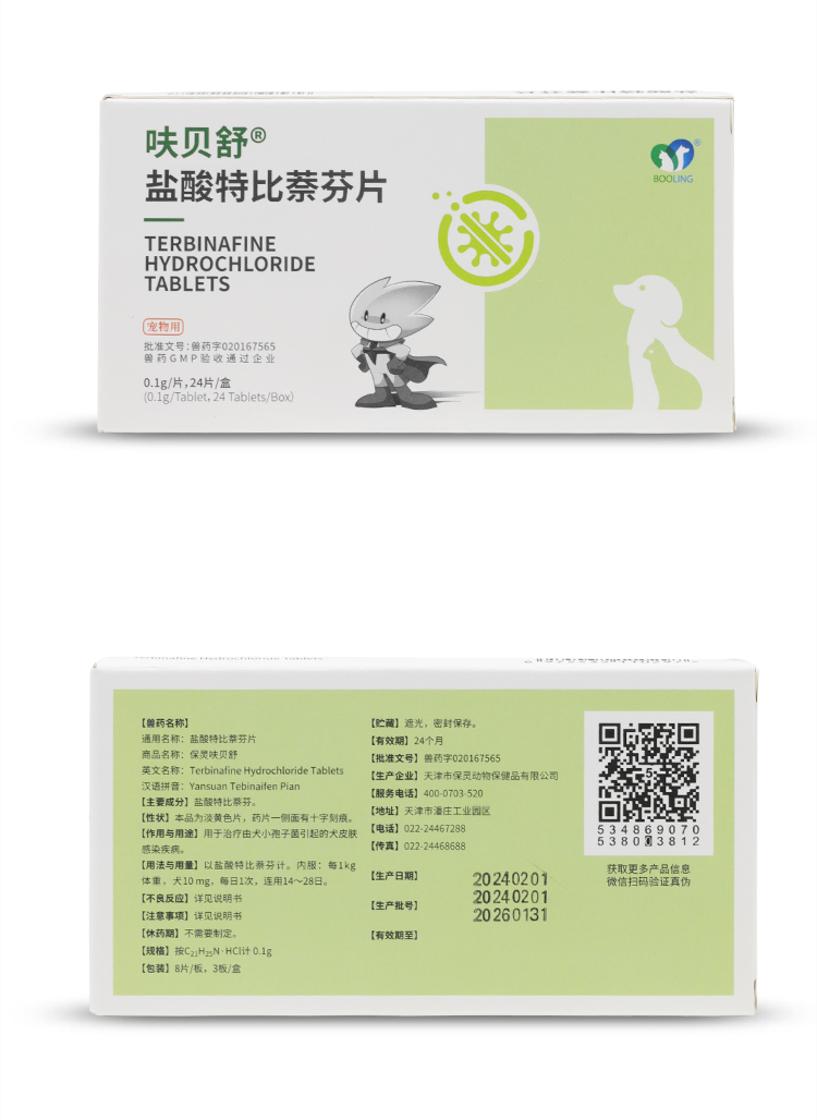 保灵呋贝舒盐酸特比萘芬片宠物真菌灭猫癣猫藓狗皮肤病真菌口服药