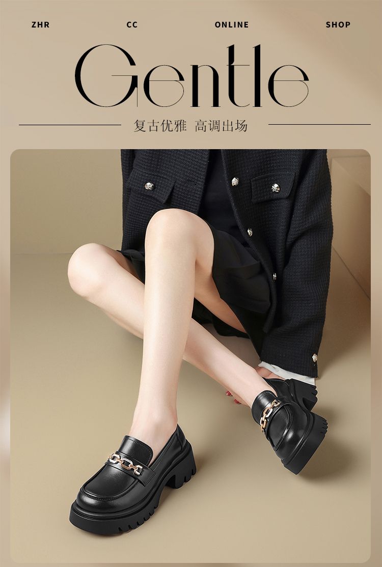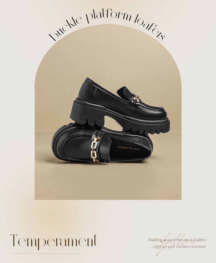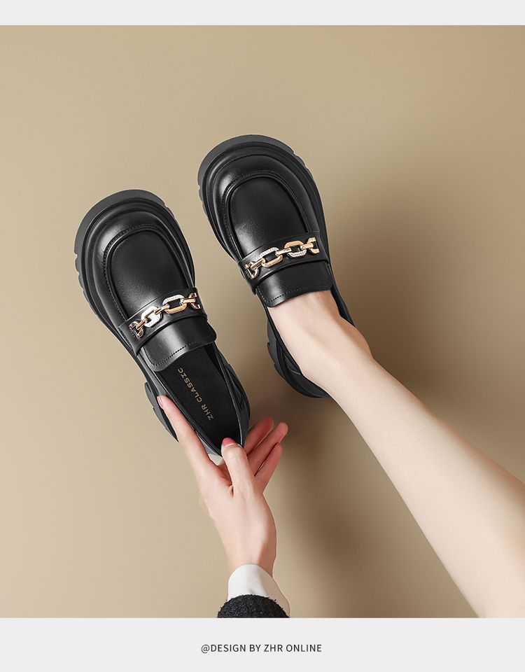 ZHR则则金属衔扣厚底乐福鞋女鞋2024新款复古优雅百搭小皮鞋