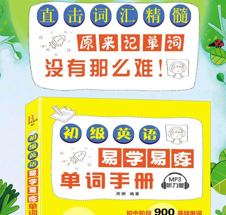 正版 初级英语易学易练单词手册 词汇速记大全常用分类词根词缀记忆法 英语单词速记背单词 英语词汇入门手册初中英语单词手册小本