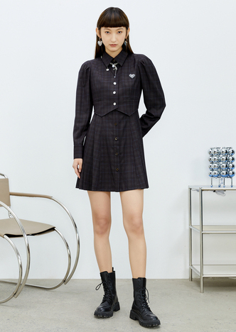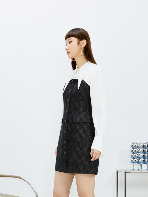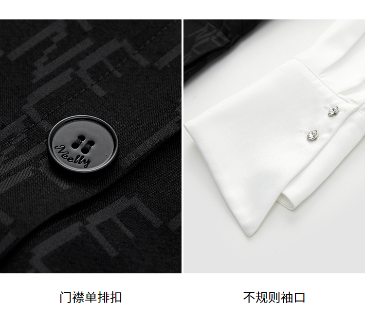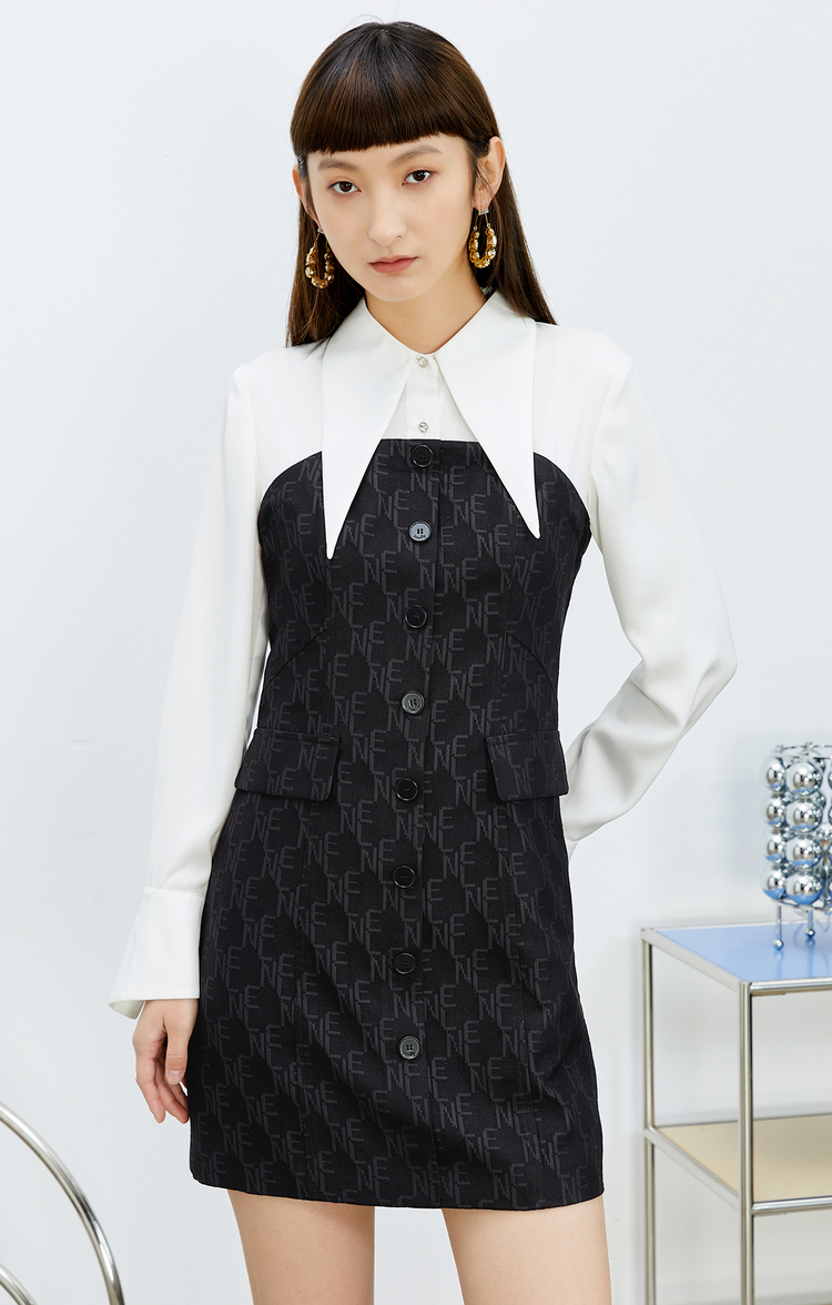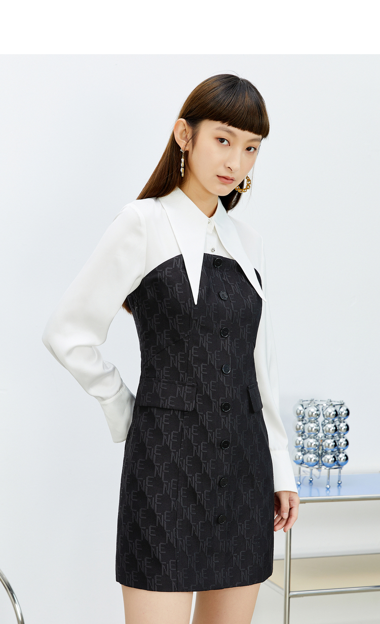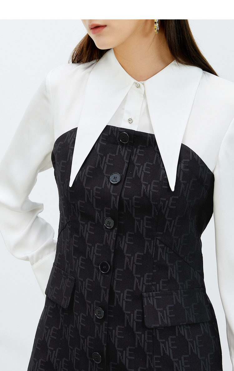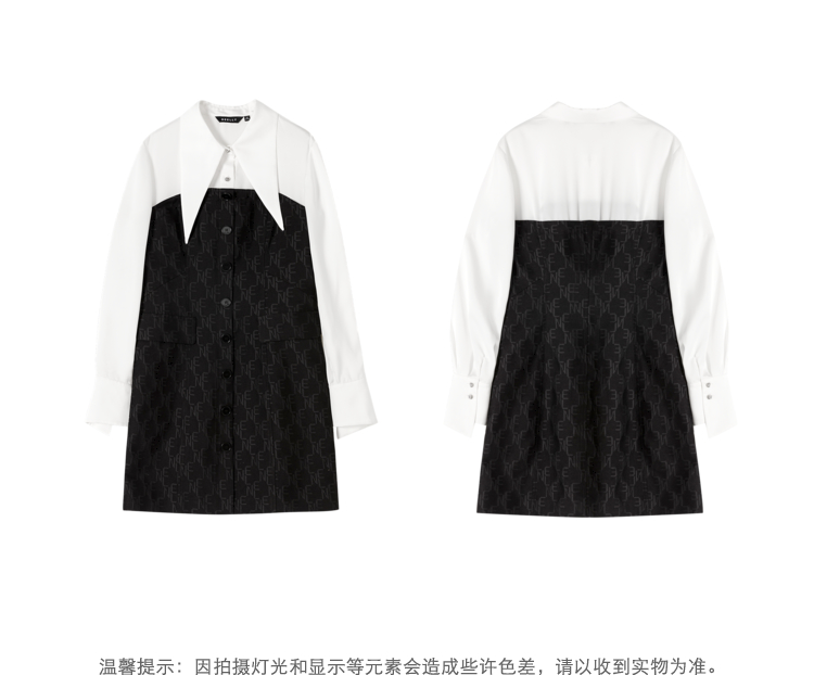 NEELLY纳俪商场同款春季连衣裙女尖尖领衬衫式拼接裙子收腰A字裙N22022Y01092