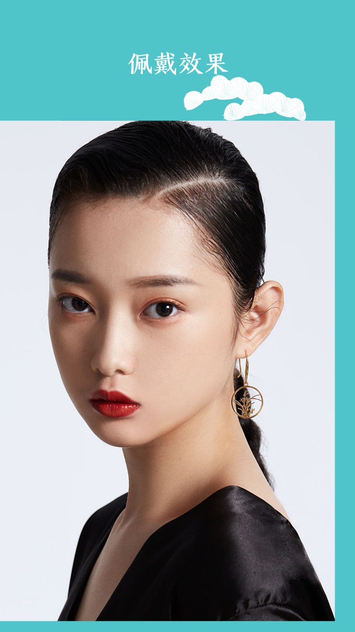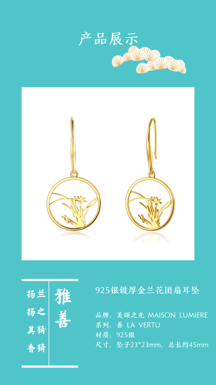 兰花团扇纯银镀18K金耳坠