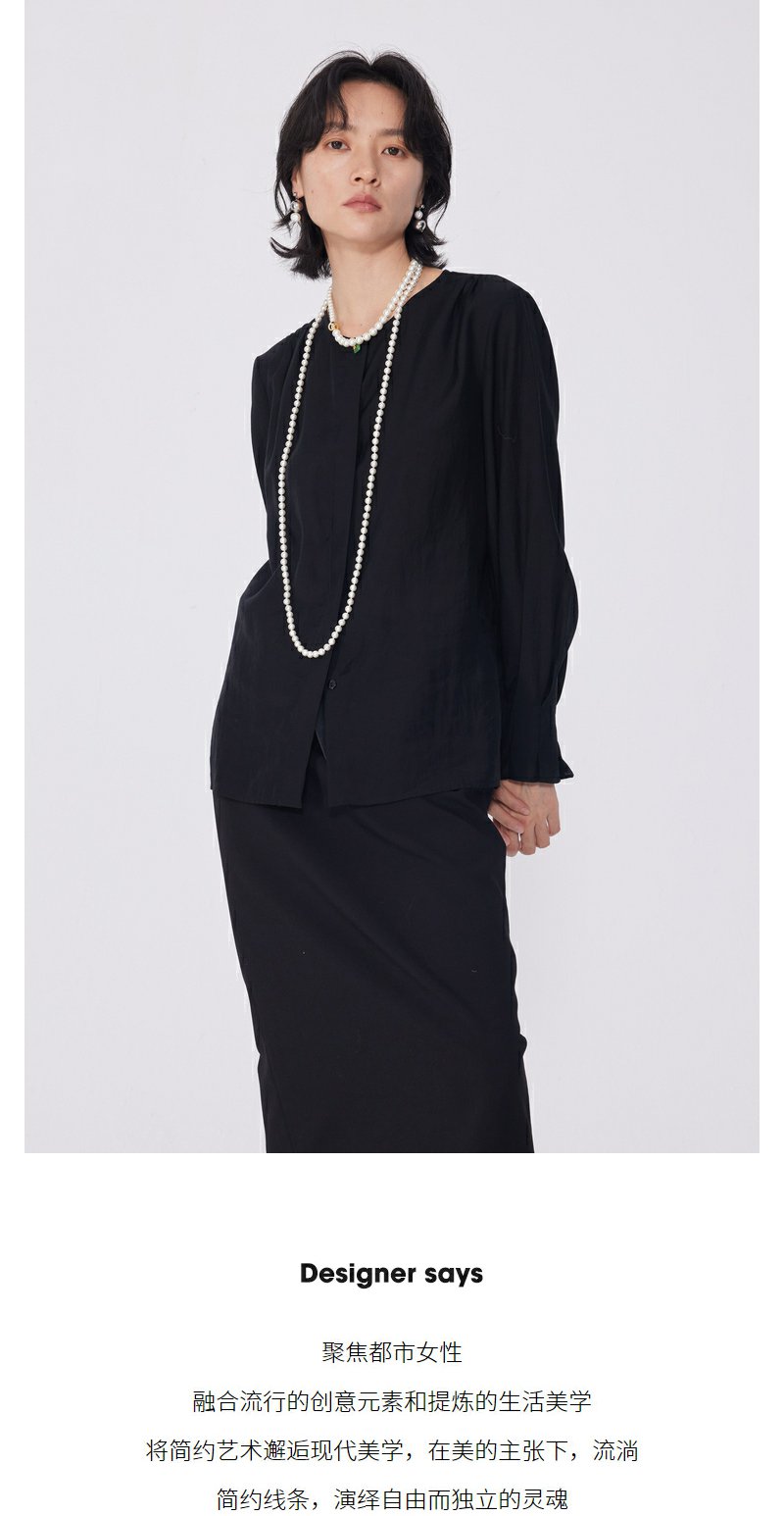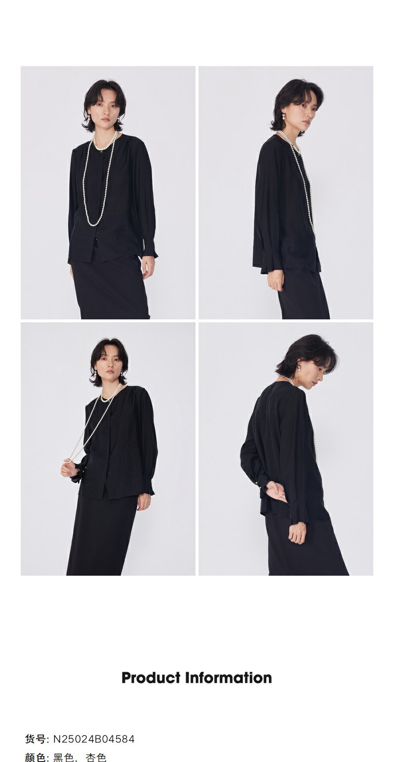 NEELLY纳俪商场同款春季新款莱赛尔长袖衬衫女纯色显瘦衬衣通勤N25024B04584