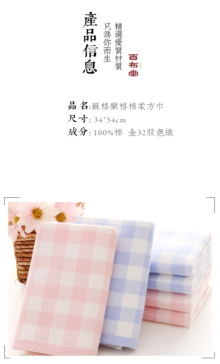 (乡村振兴商品)百布堂苏格兰格棉柔方巾(34*34cm) 商品图0