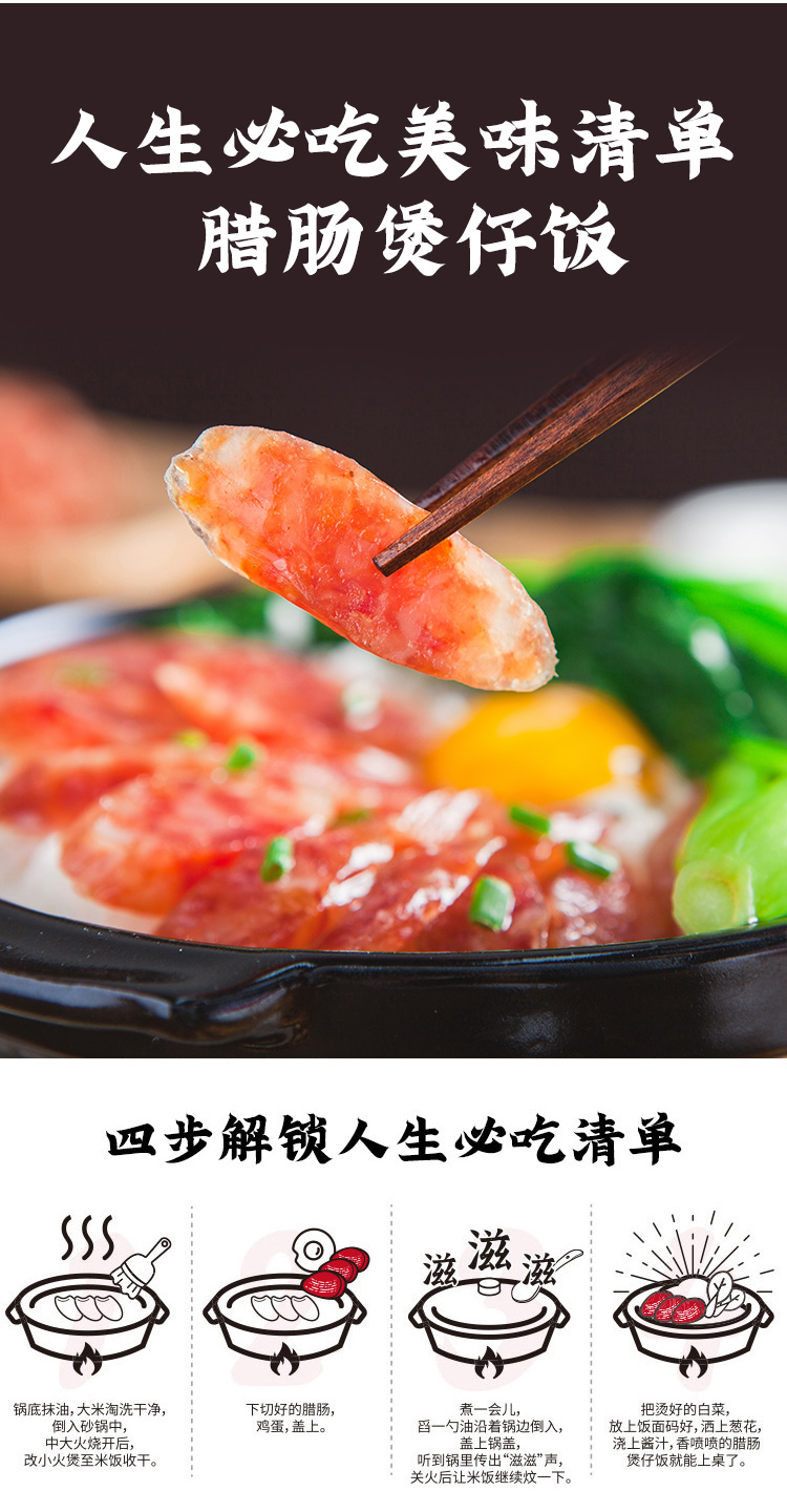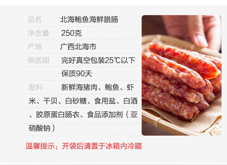 北海·鲍鱼海鲜腊肠(500g/袋)吃到的瑶柱虾 煲仔饭灵魂