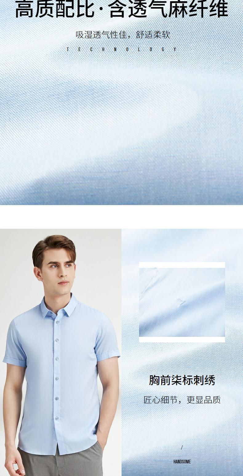 【含麻】柒牌衬衫男士夏季新款时尚潮流休闲男生翻领短袖衬衣 122A70940