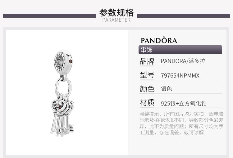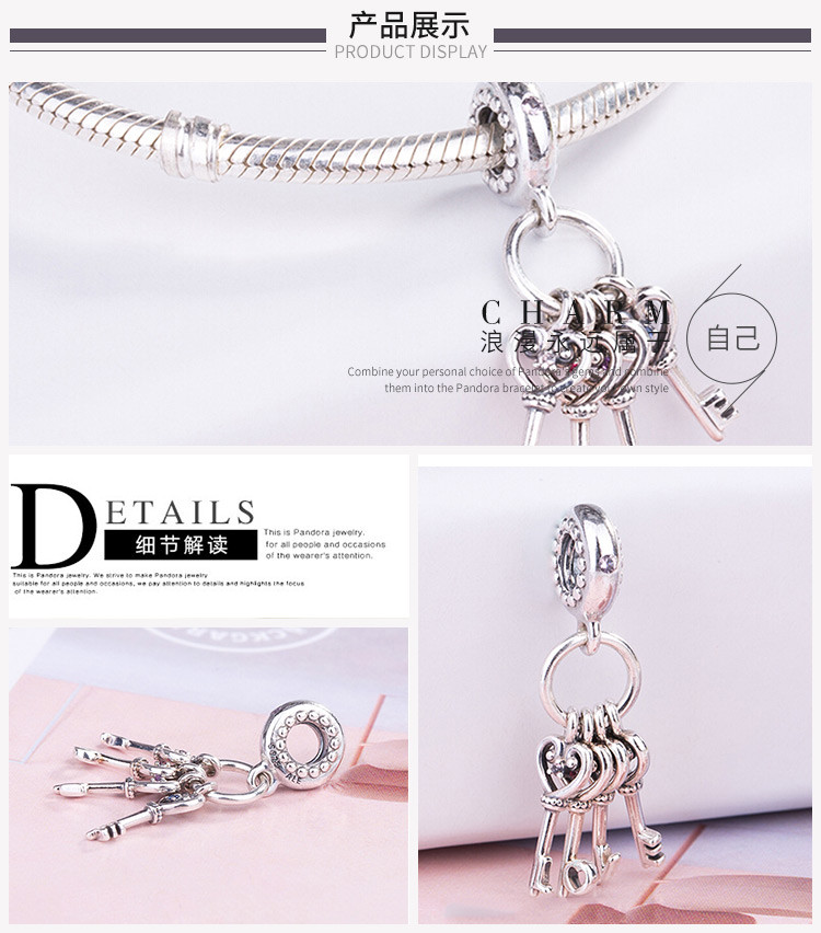 PANDORA/潘多拉女士925银串饰吊坠爱之钥797654NPMMX