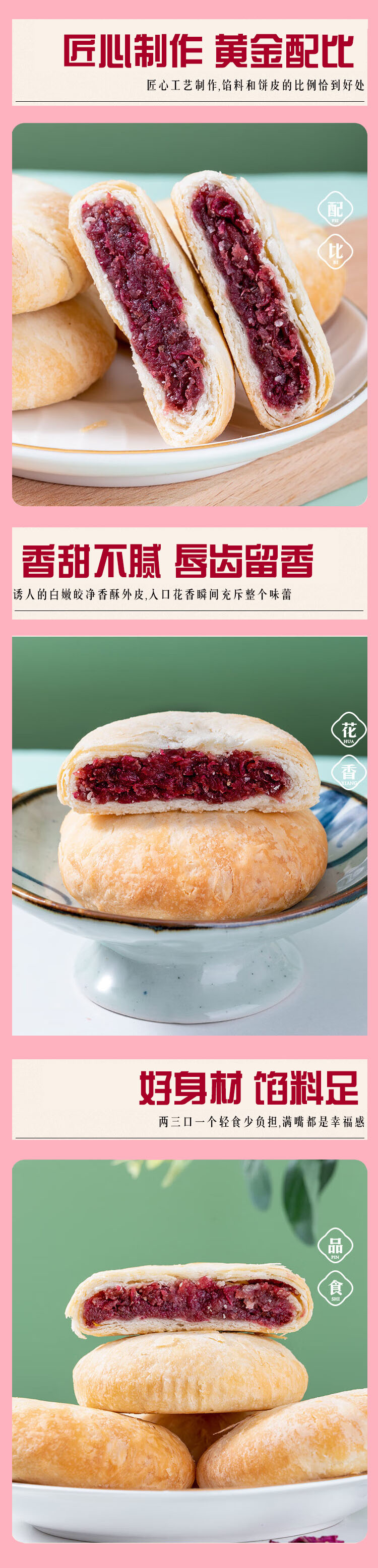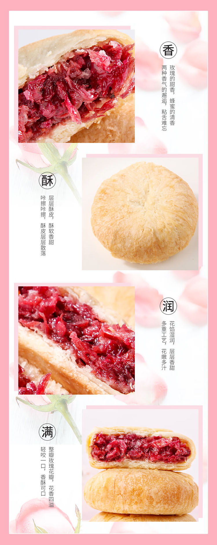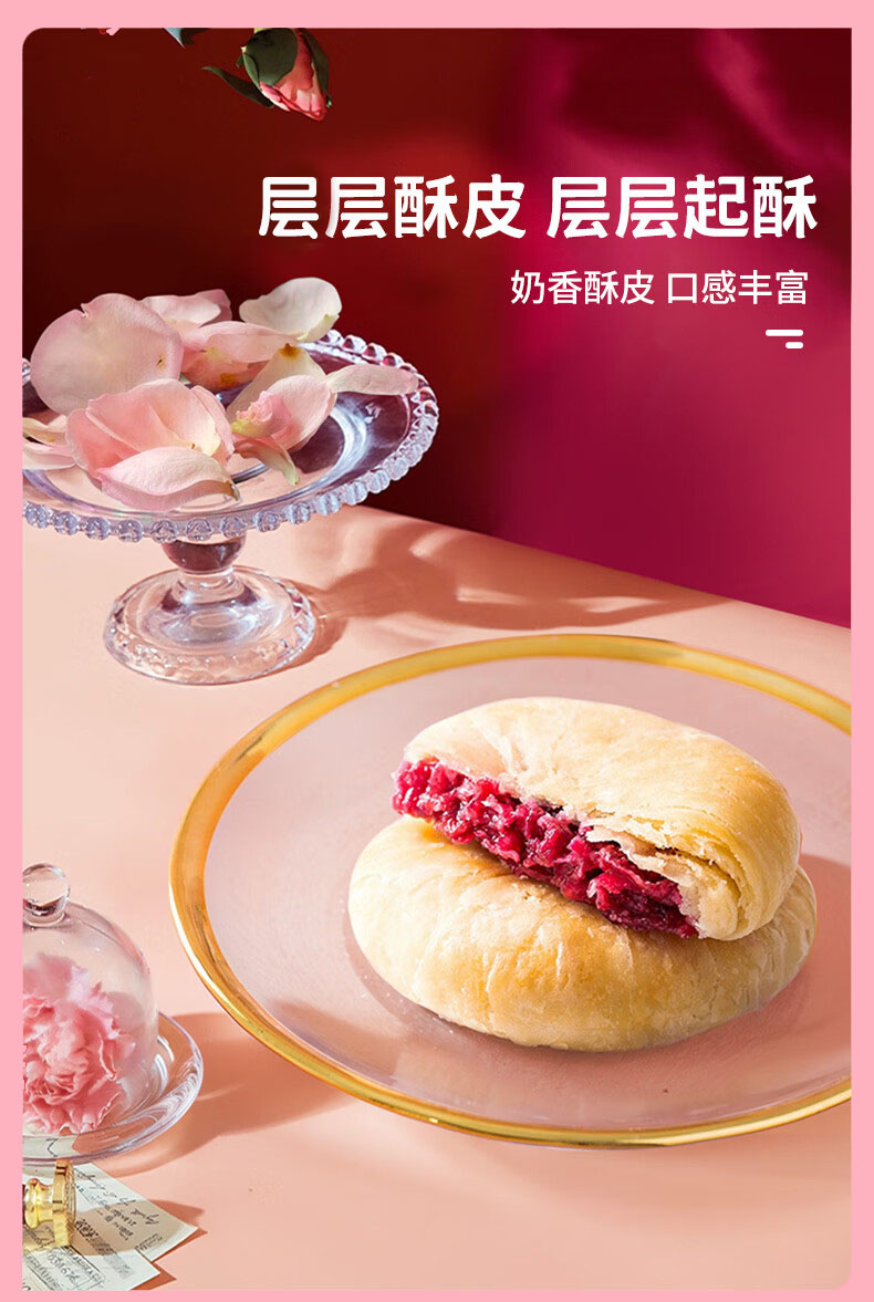 经典云南鲜花饼,5盒装(50块),精选玫瑰鲜花入馅,传统工艺制作,外皮层层酥松、内馅软糯清甜,花瓣清晰可见,花香浓郁、甜而不腻,独立小包装,外出游玩、亲友小聚,干净又方便D