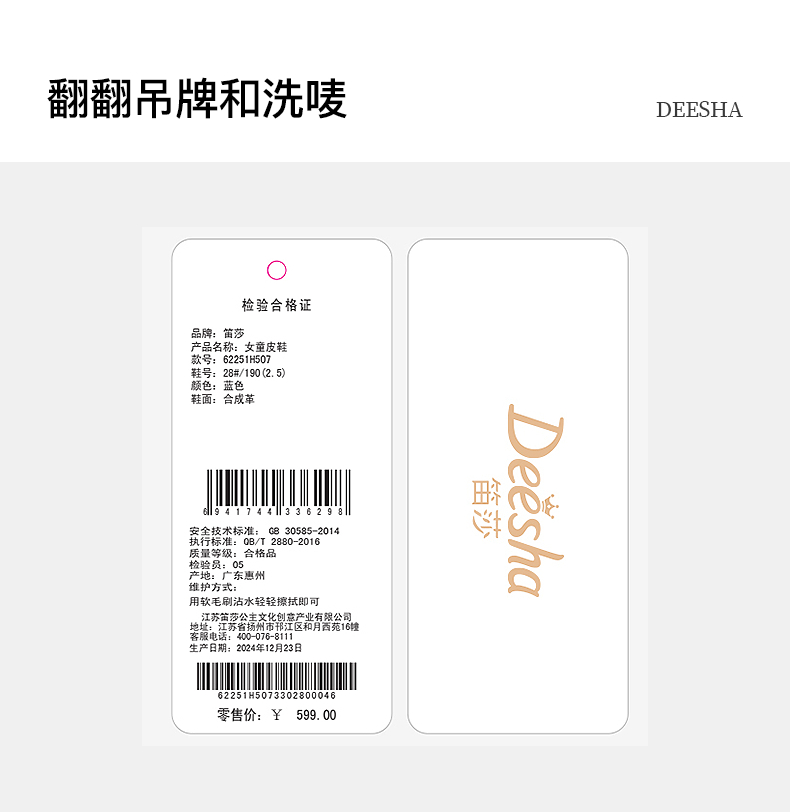 笛莎Deesha 女童童鞋2025春新款时尚透气浅口低帮皮鞋