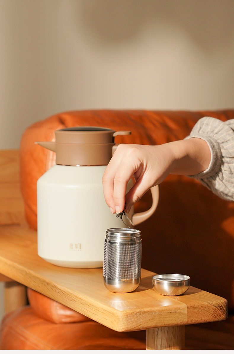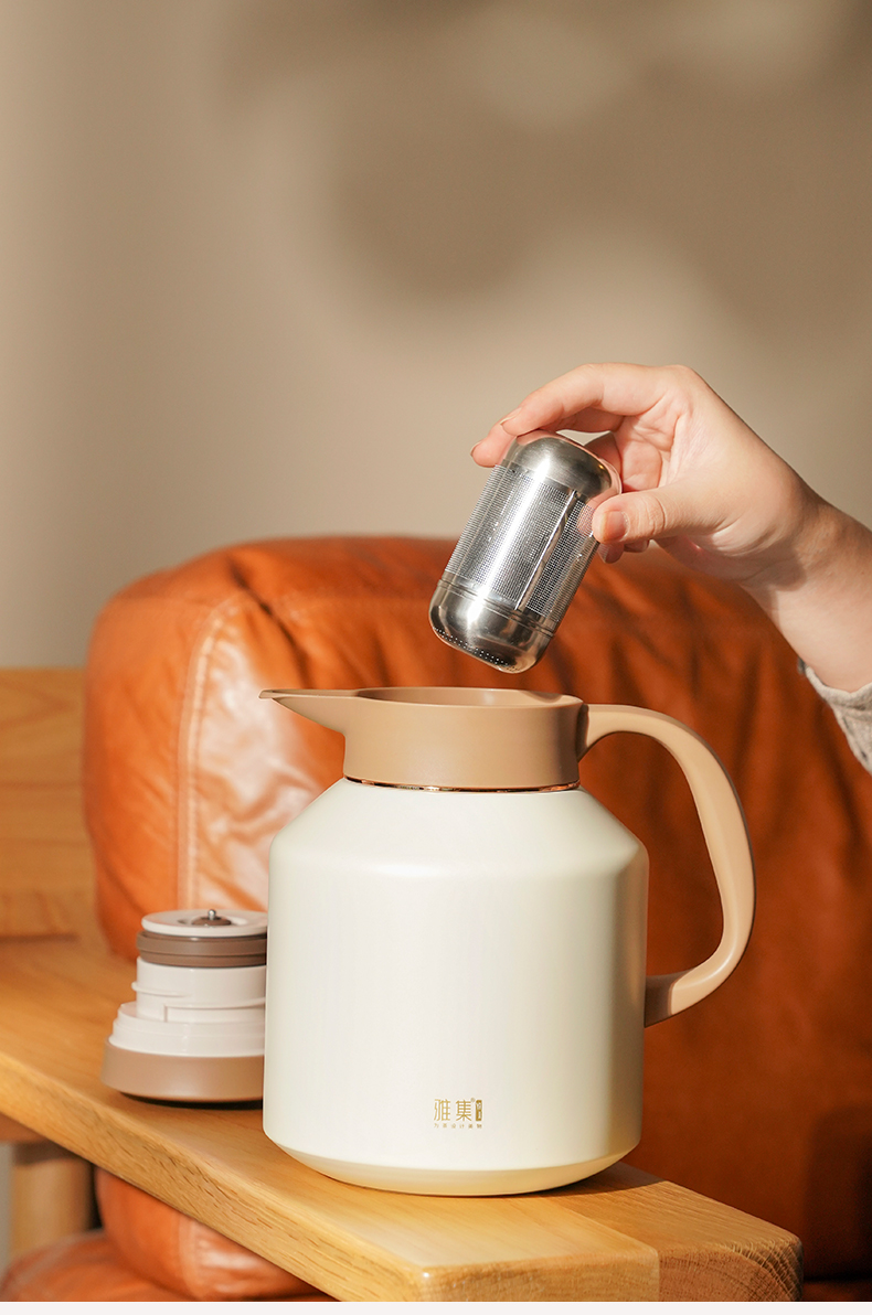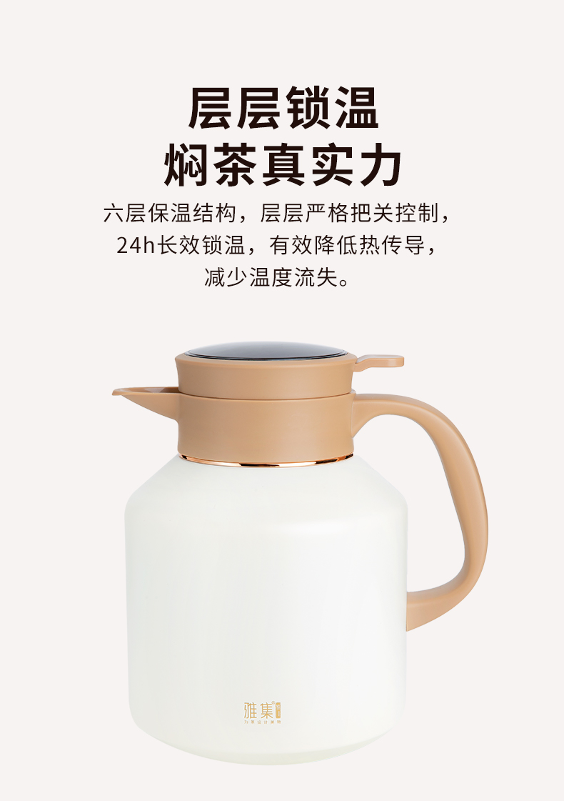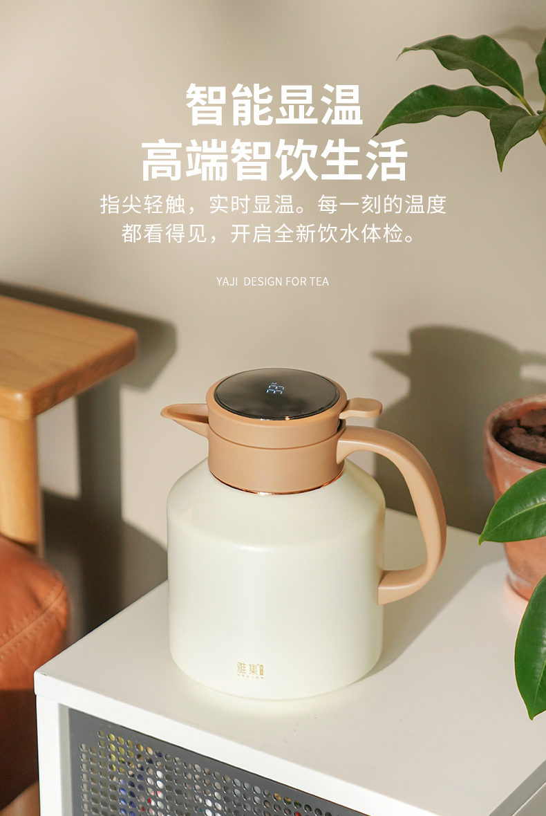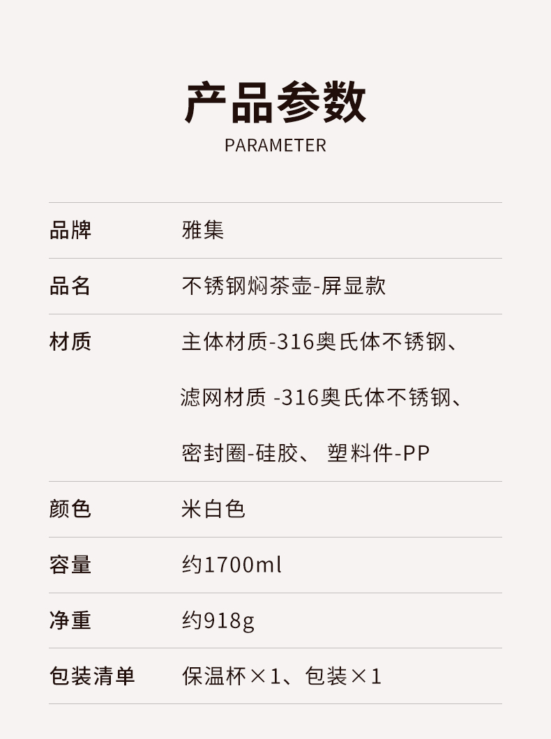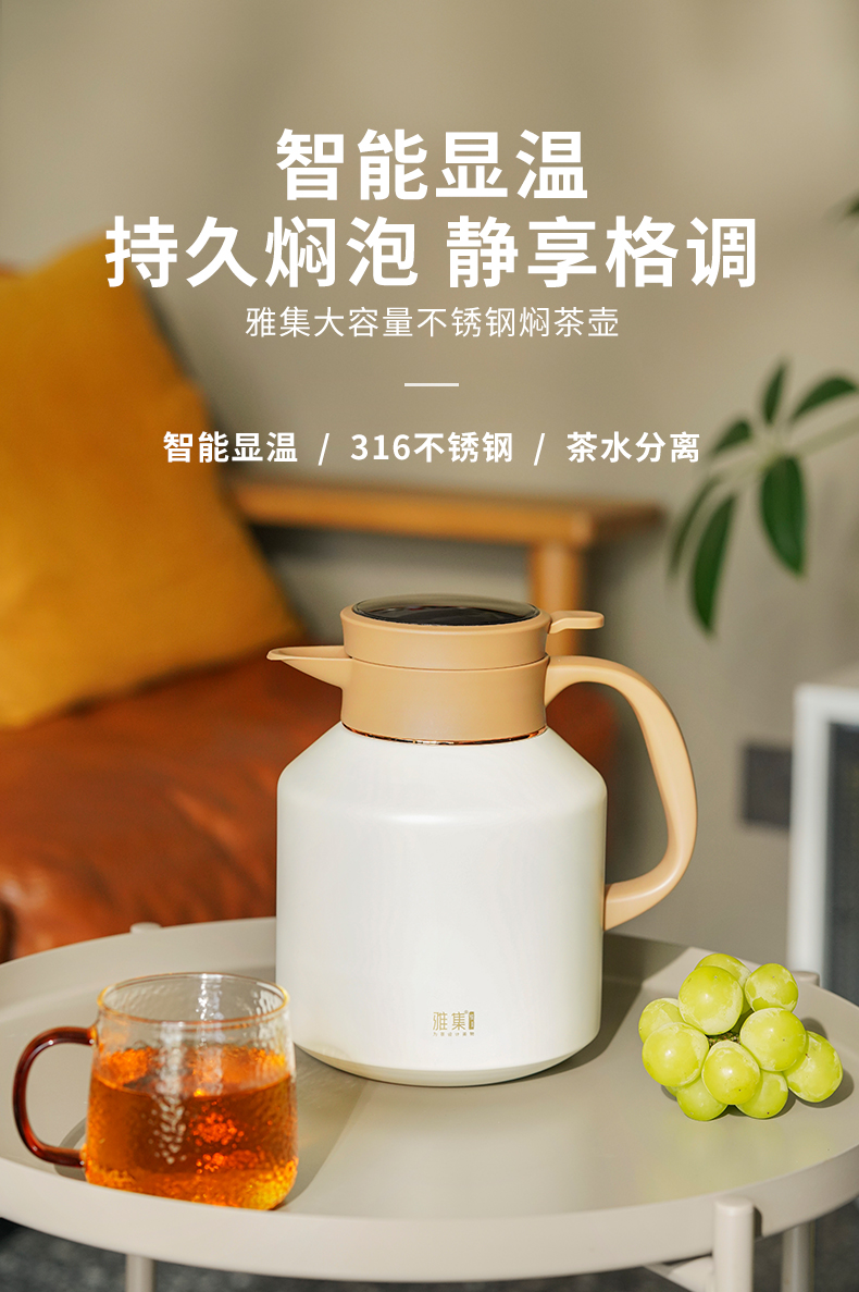 雅集茶具不锈钢焖茶壶1700ml(屏显款-米白色)
