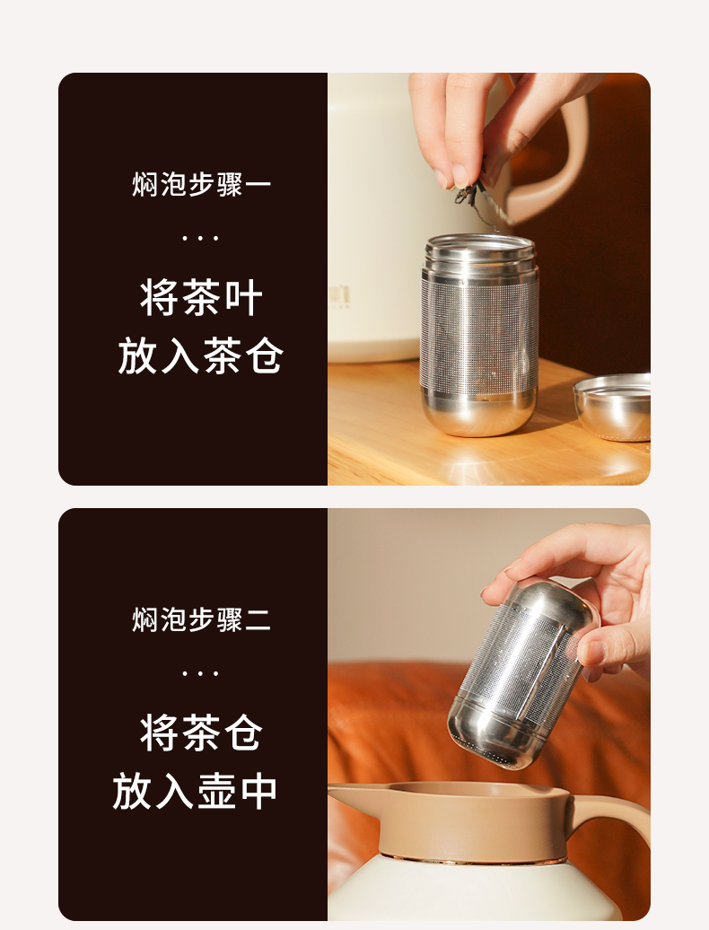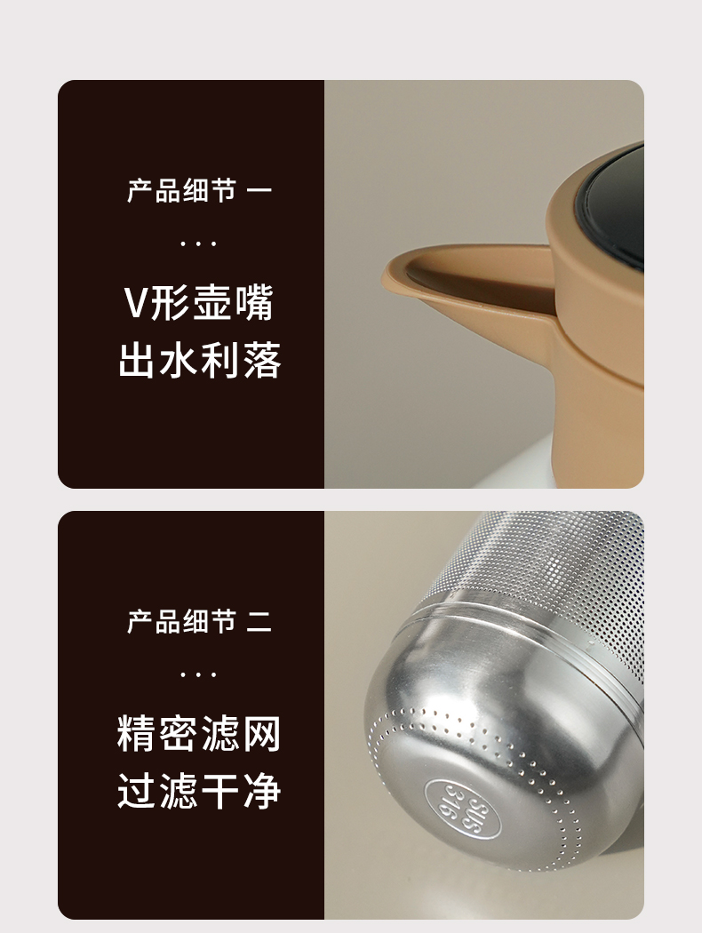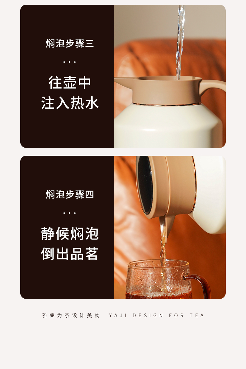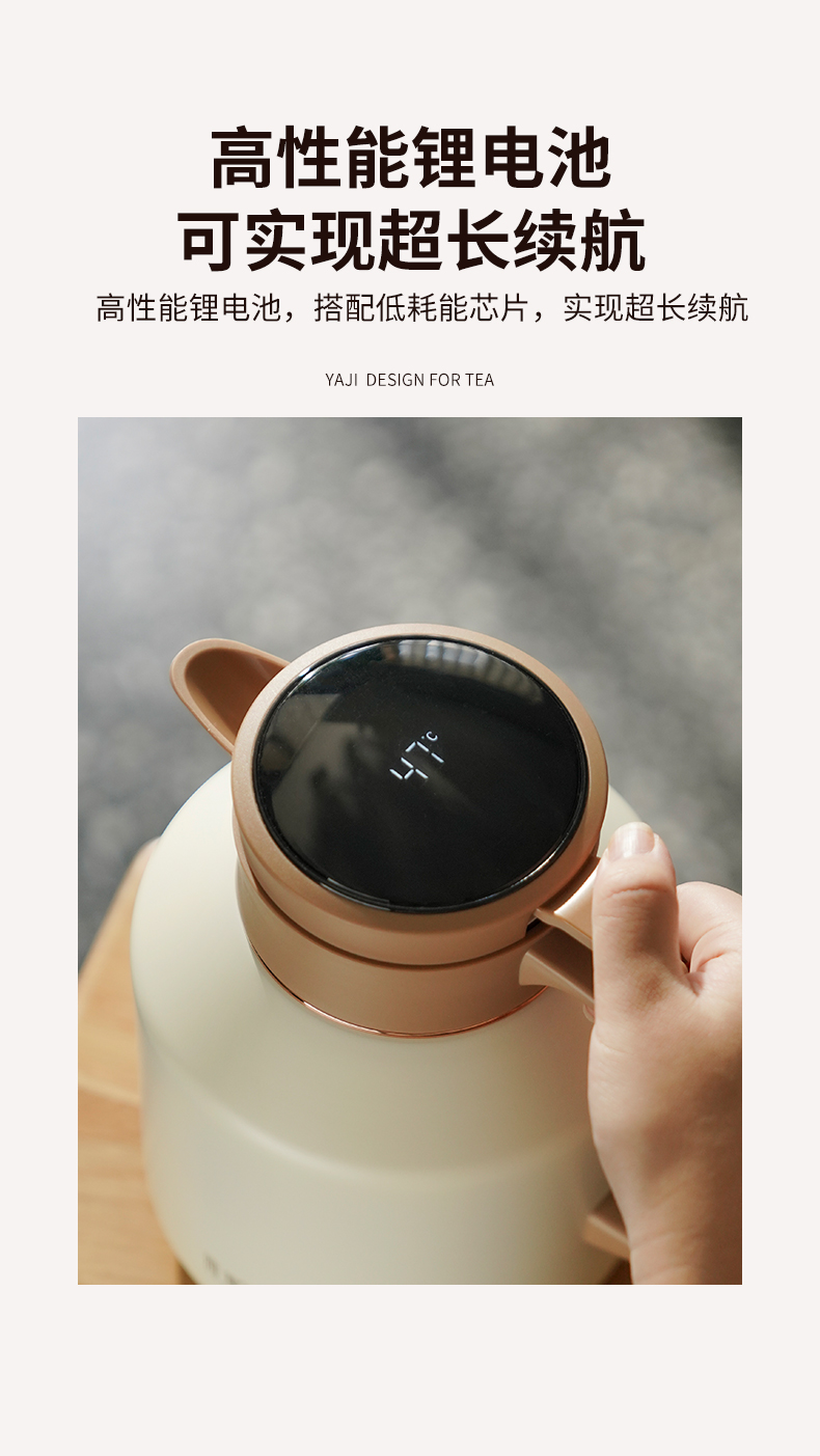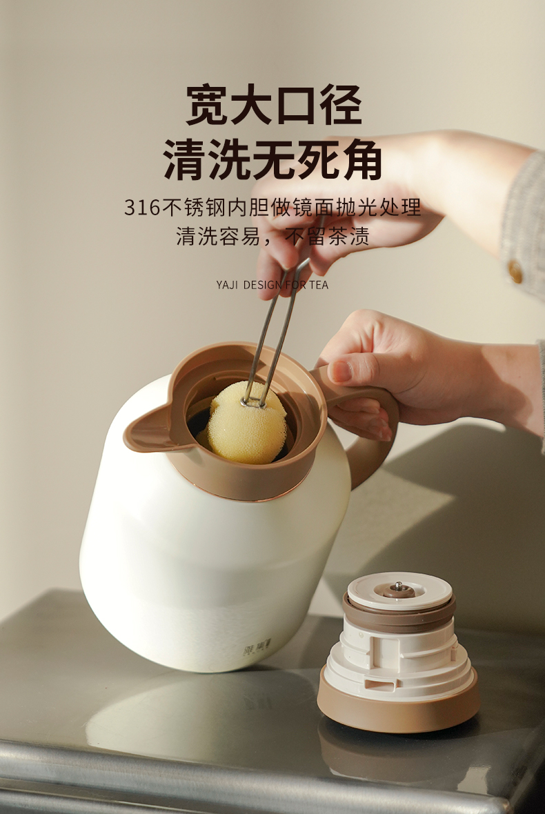 雅集茶具不锈钢焖茶壶1700ml(屏显款-米白色)