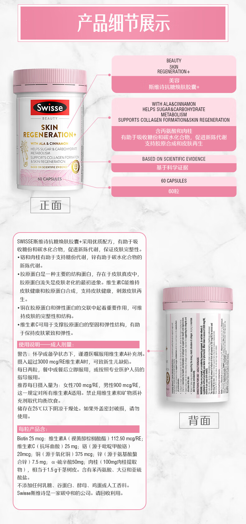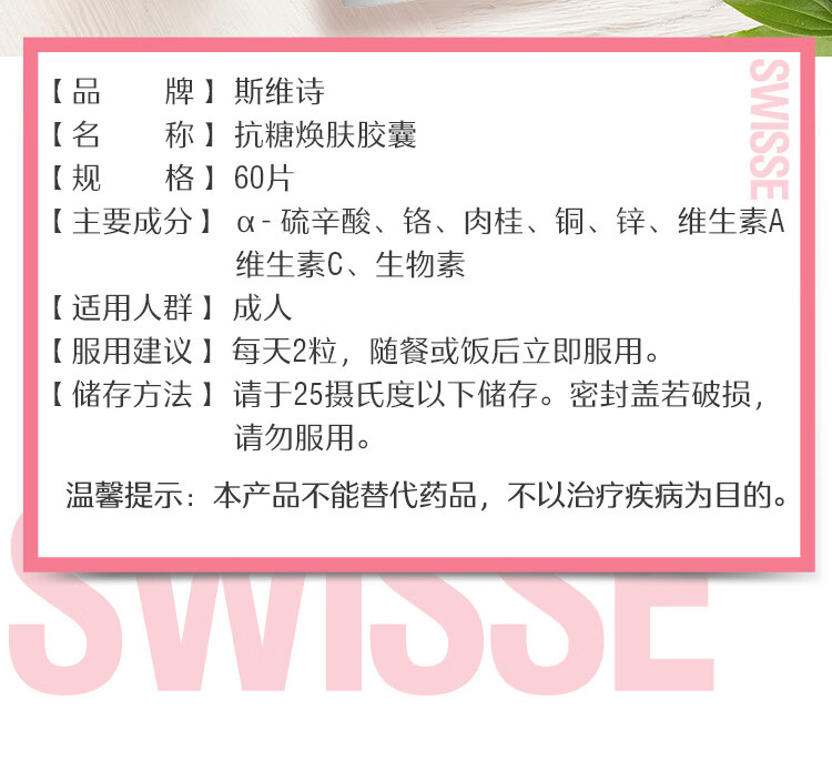 swisse 冻龄护肤抗糖片抗衰老抗糖丸胶囊 60粒
