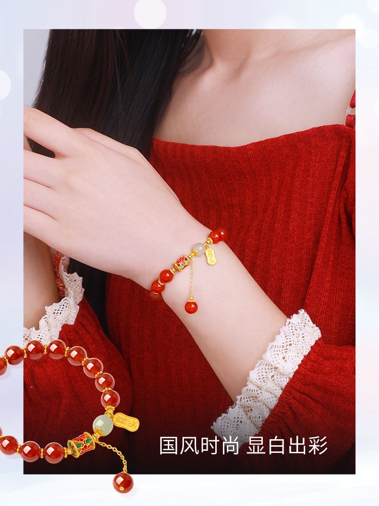 【品牌授权】BAOFANDI宝梵迪朱砂和田玉饰品 2024年 一笼蒸饺 纳福朱砂手链本命年手串男女BF
