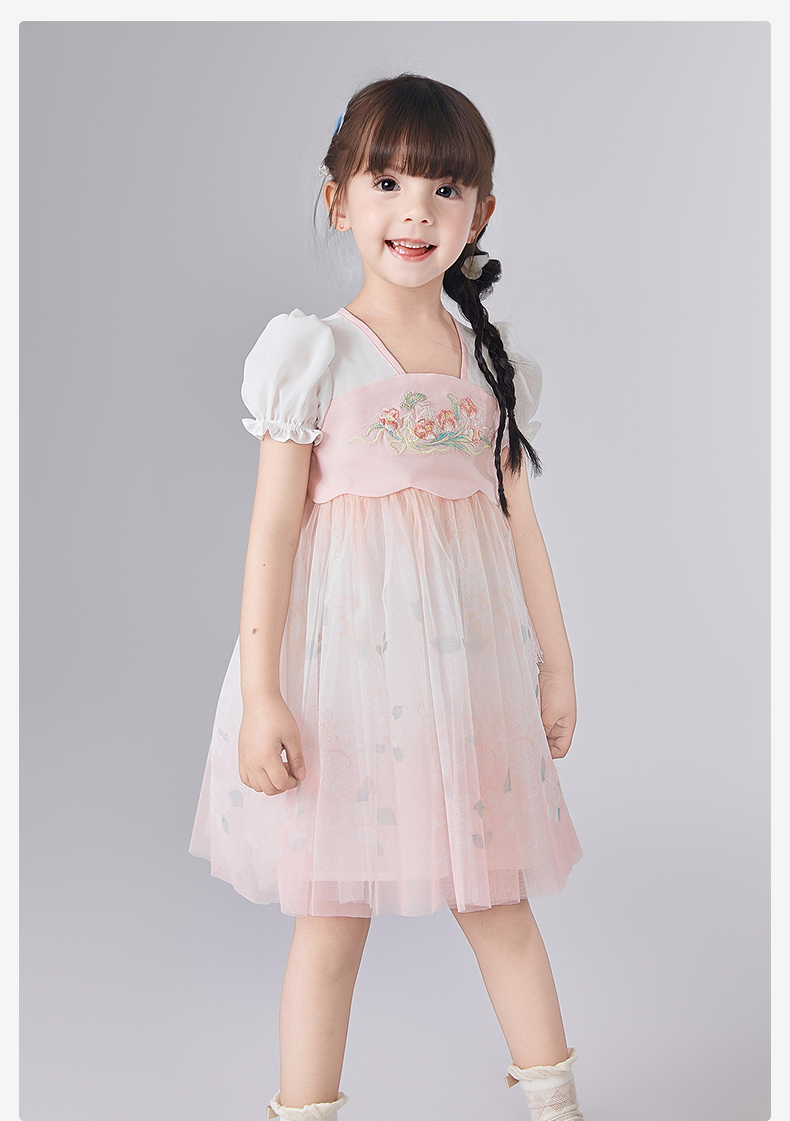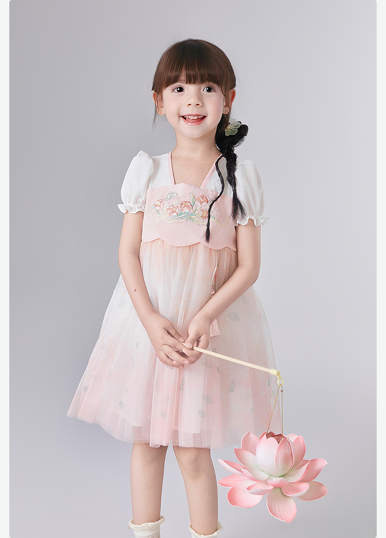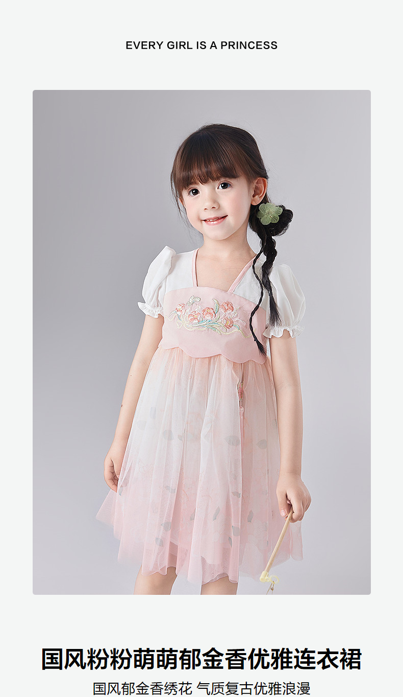 笛莎Deesha 童装女童连衣裙2025夏新款女童国风粉粉萌萌郁金香优雅连衣裙