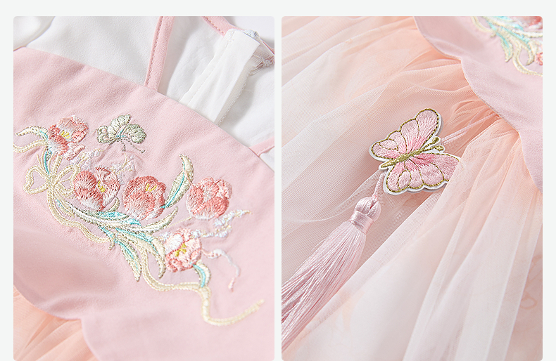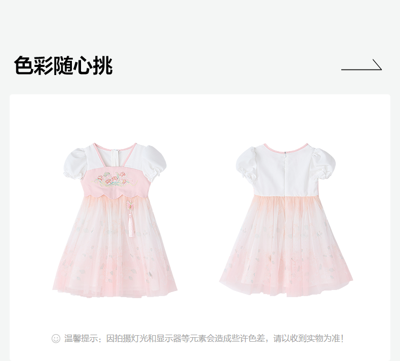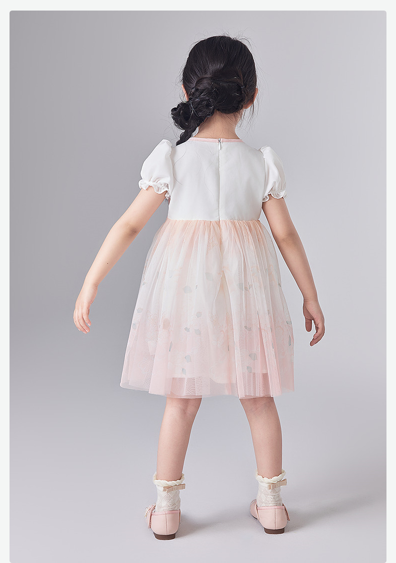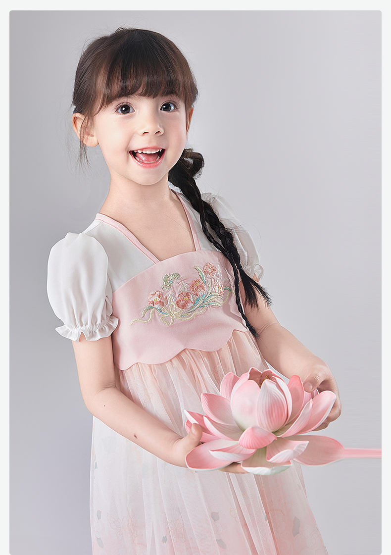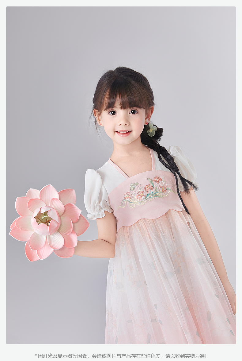 笛莎Deesha 童装女童连衣裙2025夏新款女童国风粉粉萌萌郁金香优雅连衣裙