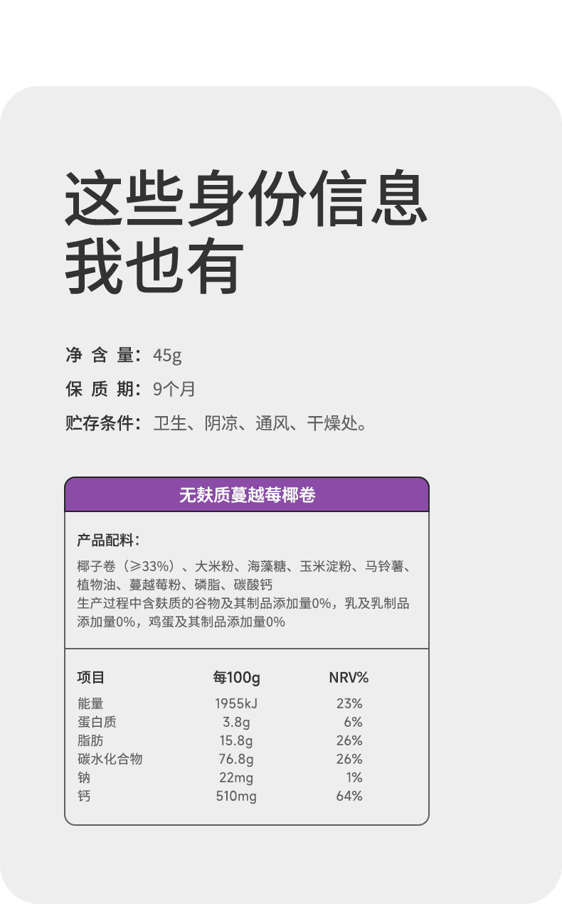 【伊威】无麸质蔓越莓椰卷零食椰浆不添加鸡蛋牛奶
