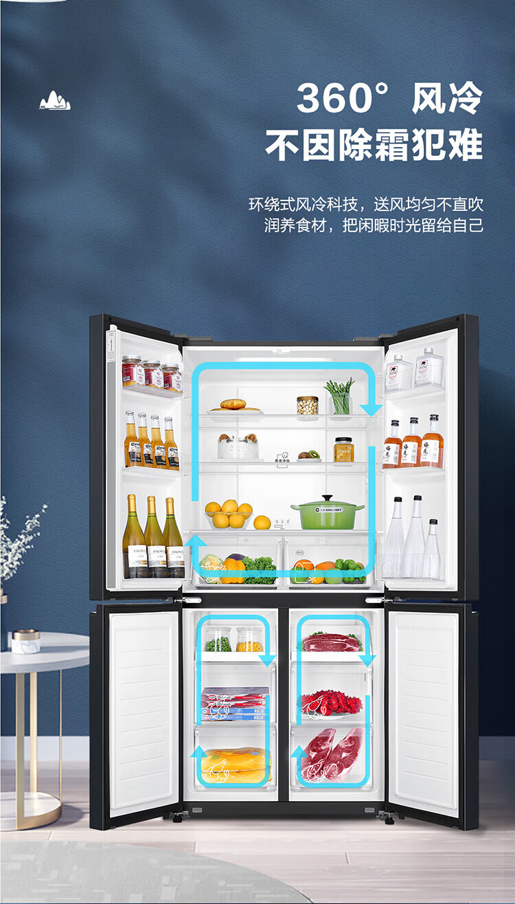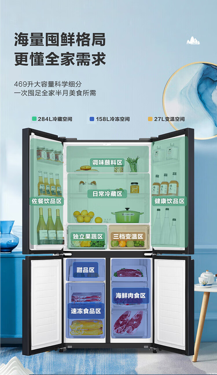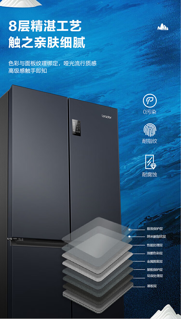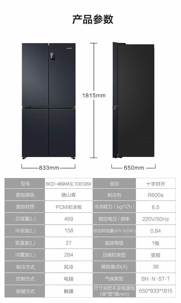 统帅(leader)海尔出品 469升十字门冰箱 一级双变频 黑金净味 母婴嵌入冰箱