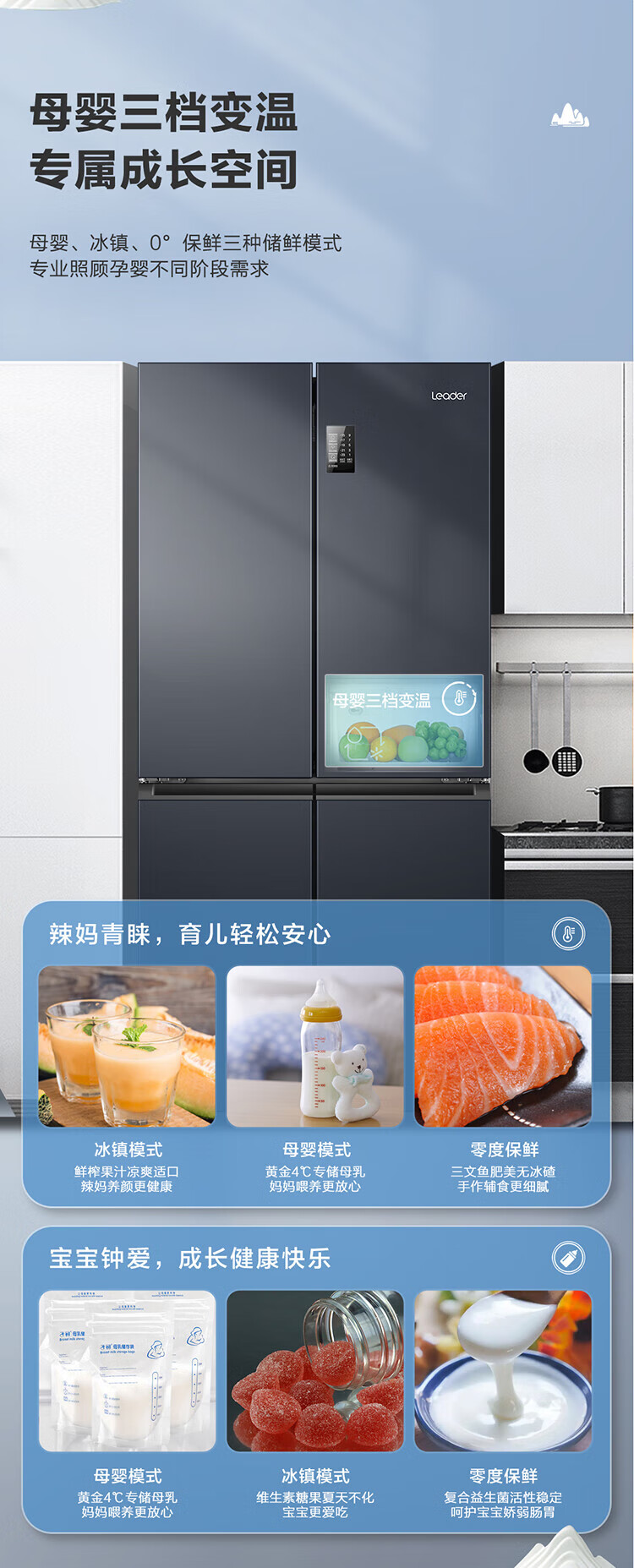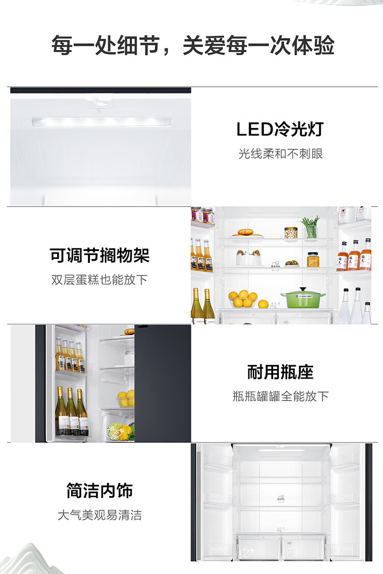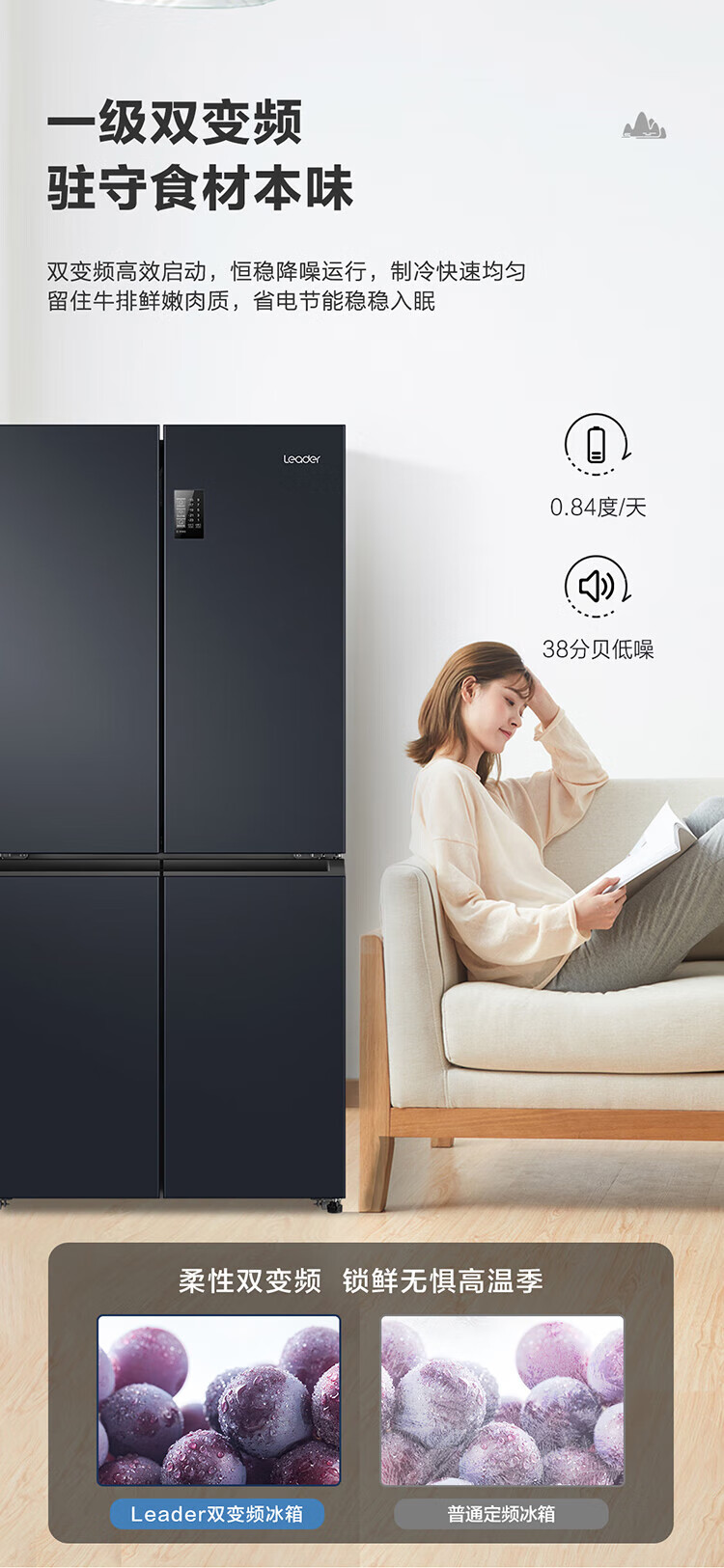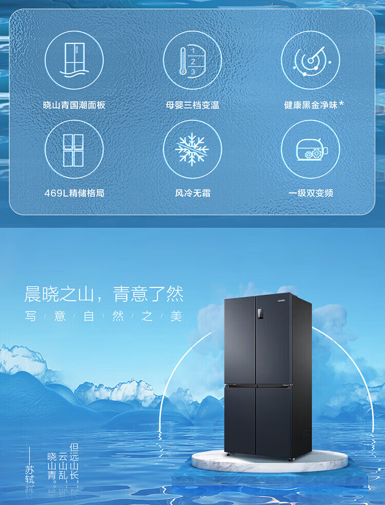 统帅(leader)海尔出品 469升十字门冰箱 一级双变频 黑金净味 母婴嵌入冰箱