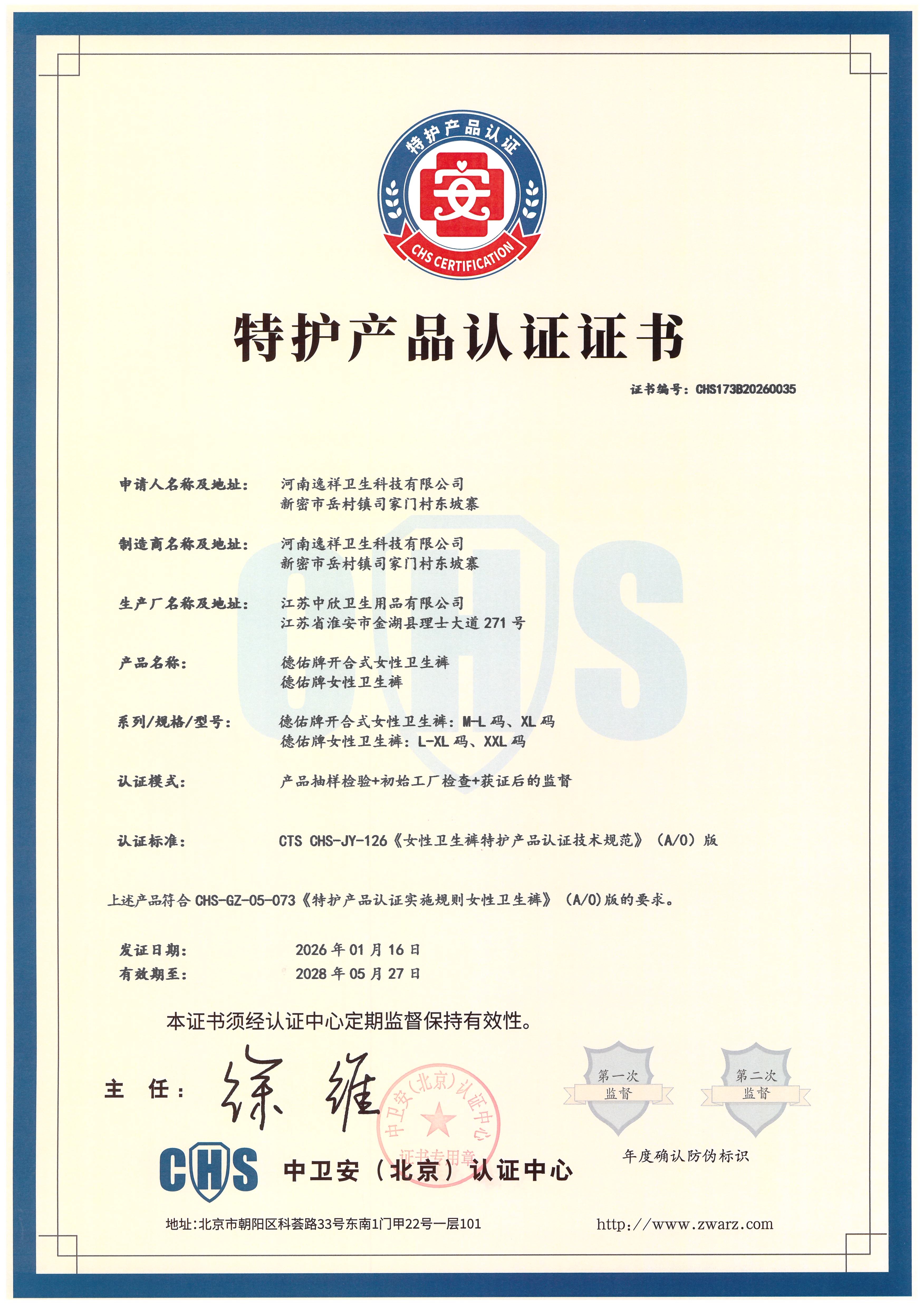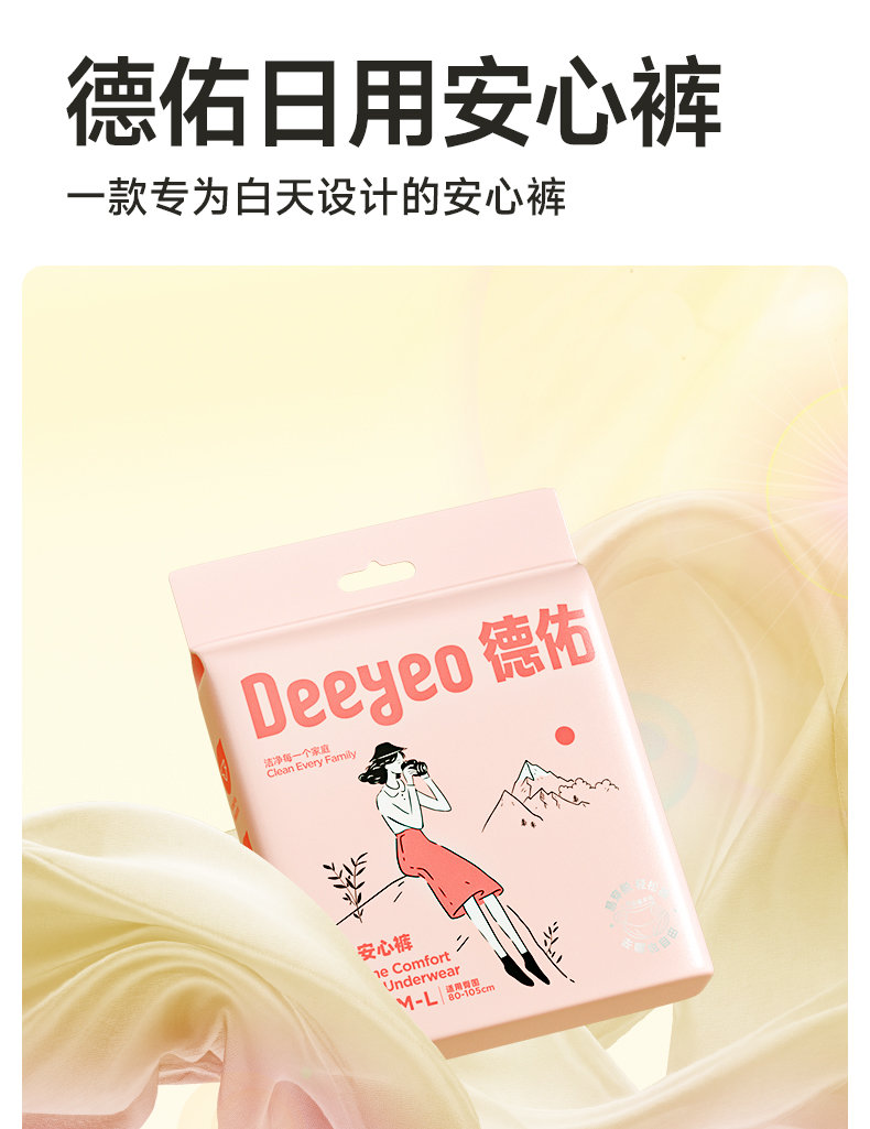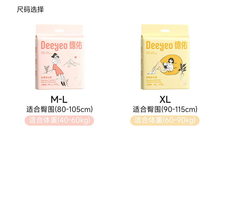 【GX】德佑卫生巾安心裤女性经期用安睡裤防漏魔术贴2条*2包