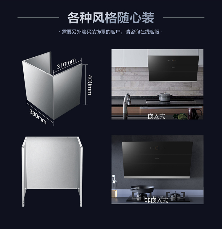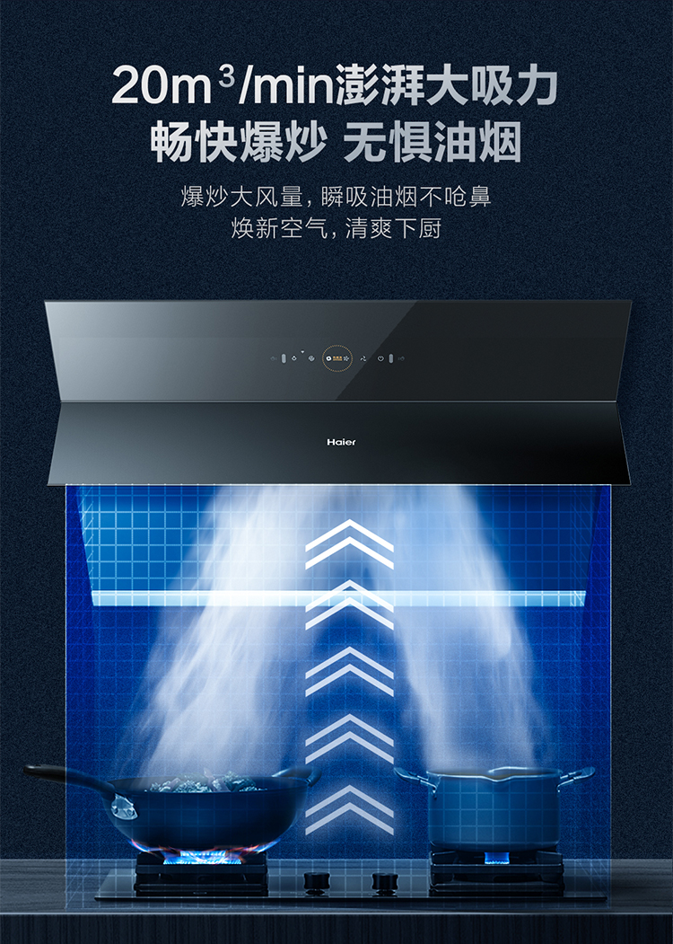 海尔(Haier)侧吸触摸 20m³大吸力 挥手智控开关机 wifi智控 支持小优语音控制 专业热熔洗 CXW-219-EC906U1(无装饰罩)