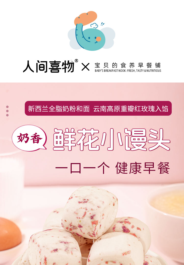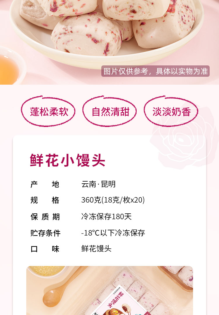 人间喜物|云南玫瑰鲜花馒头健康早餐速冻包(360g/袋)