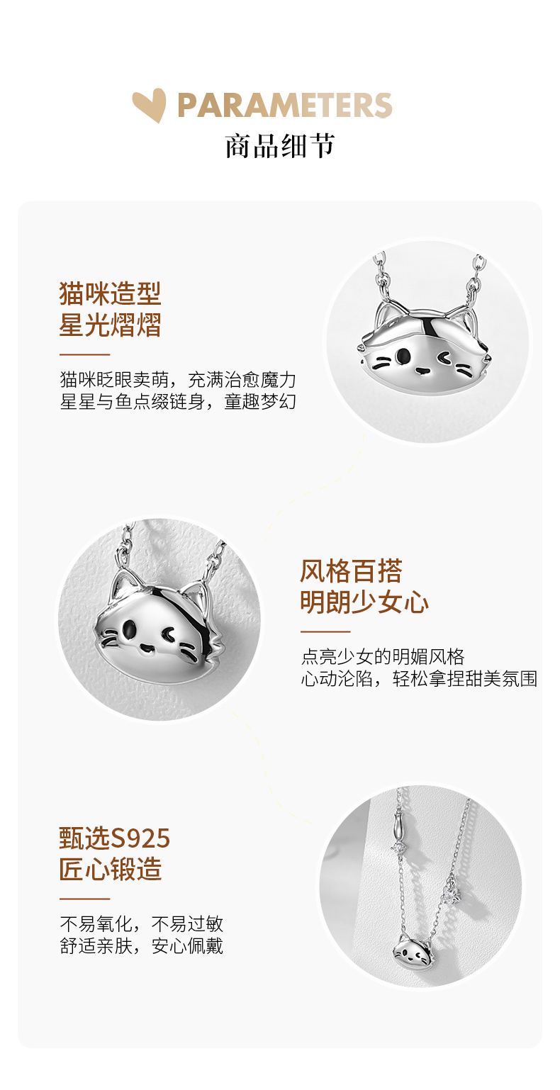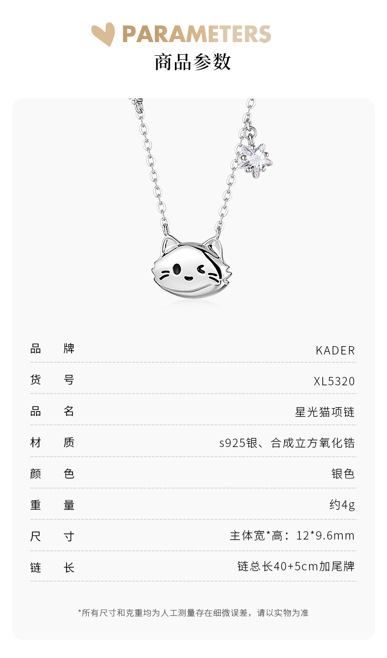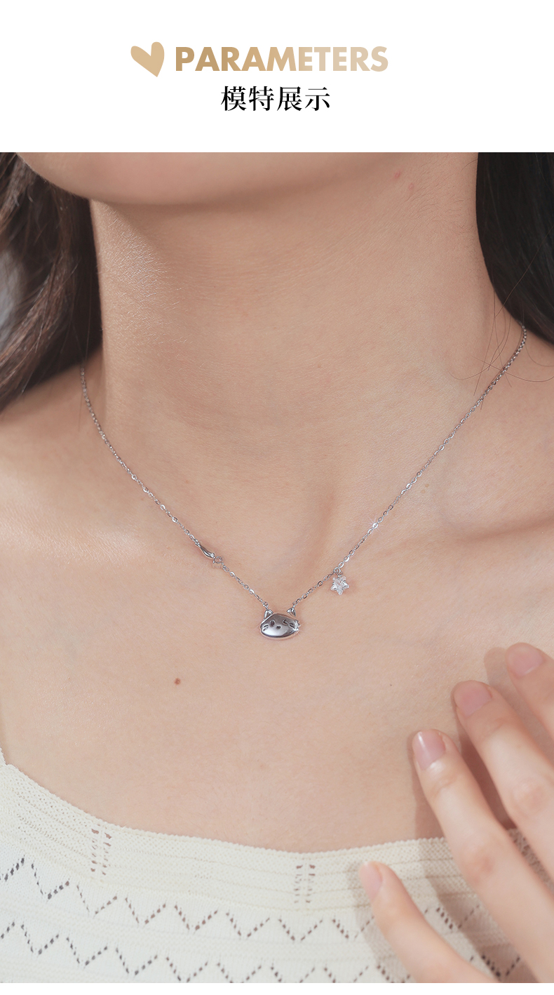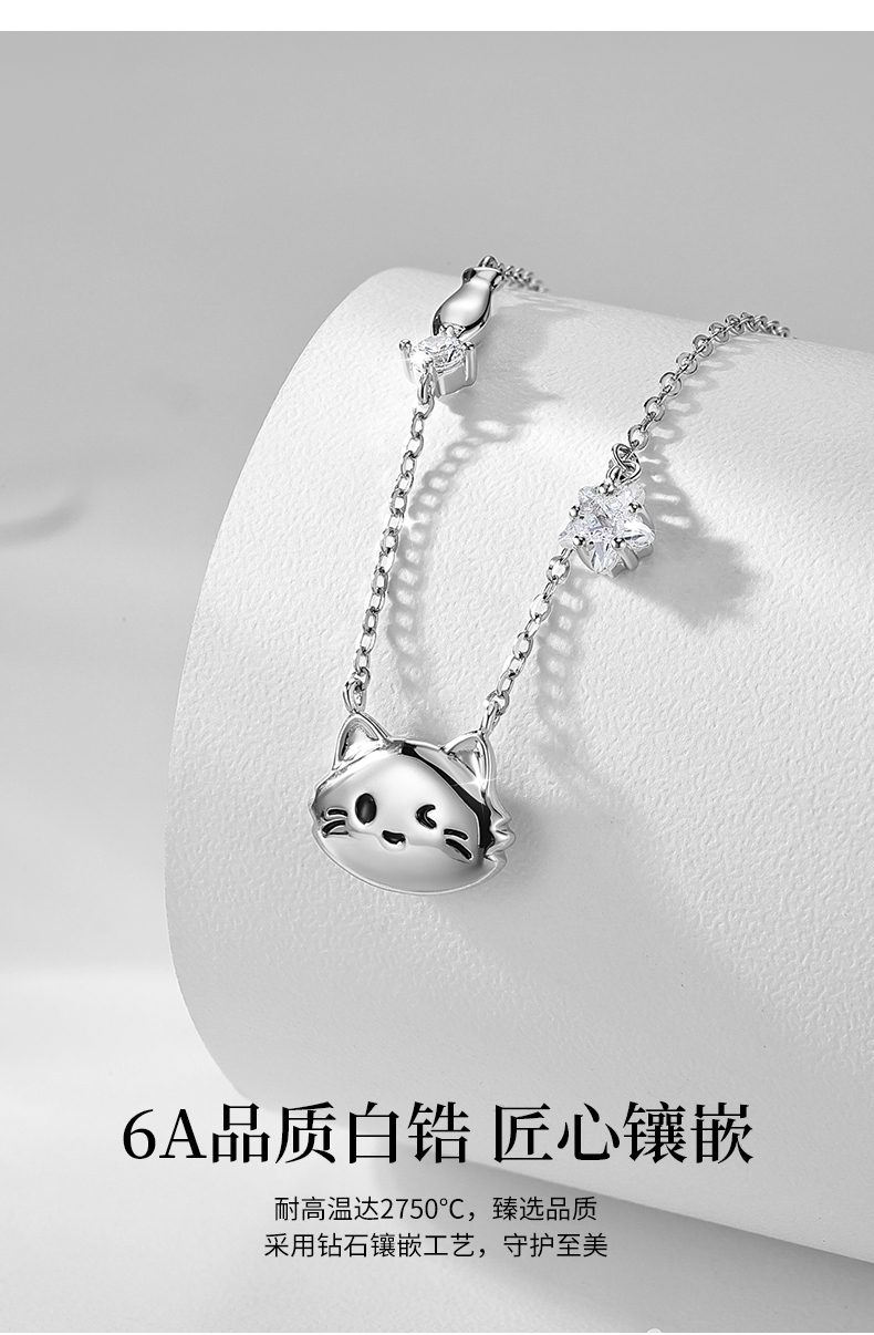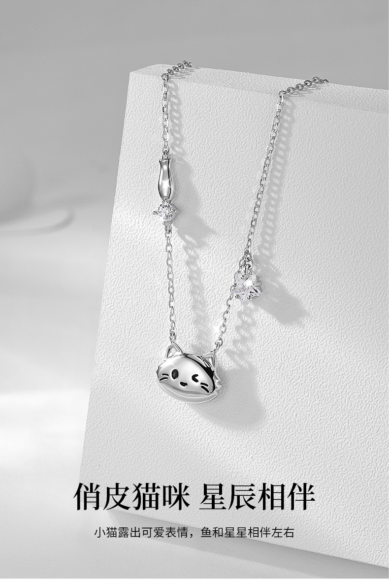 卡蒂罗/KADER 星光猫项链 萌趣猫咪可爱俏皮wink萌趣爱恋可调节吊坠 璀璨星光简约百搭喵与鱼拼接链