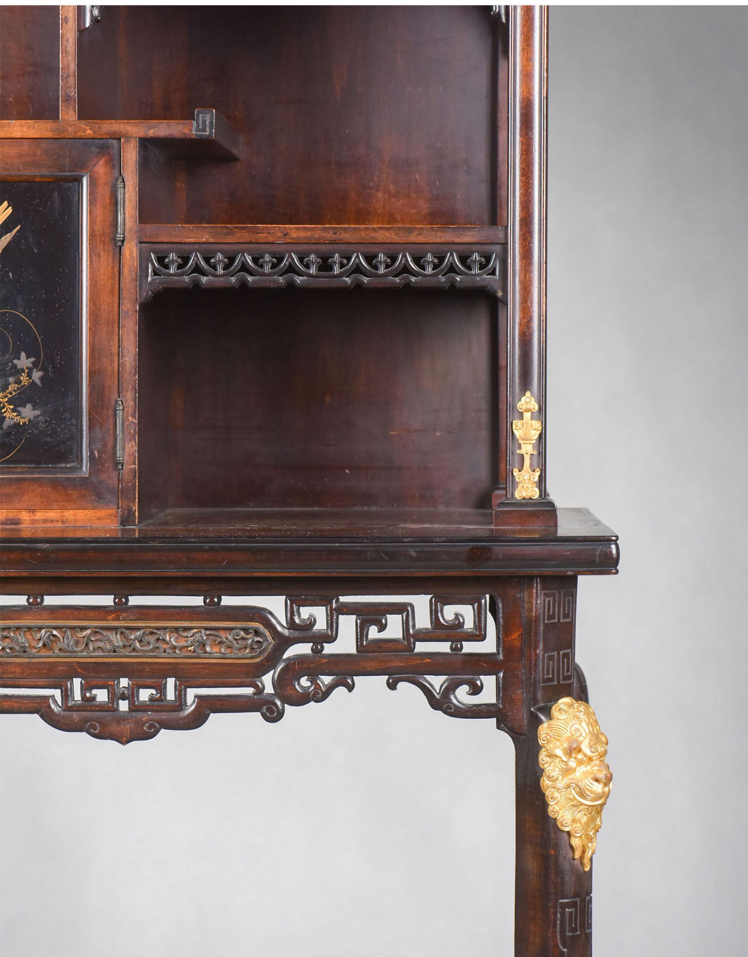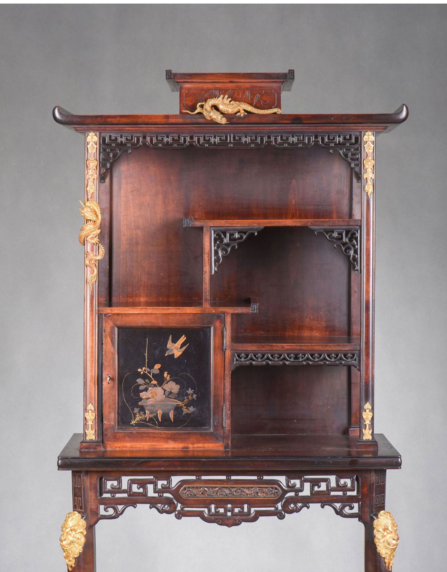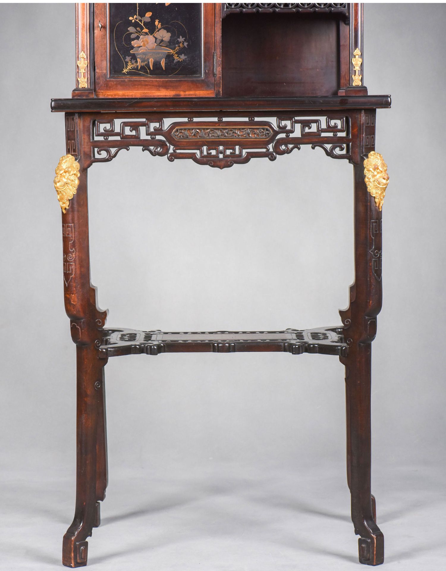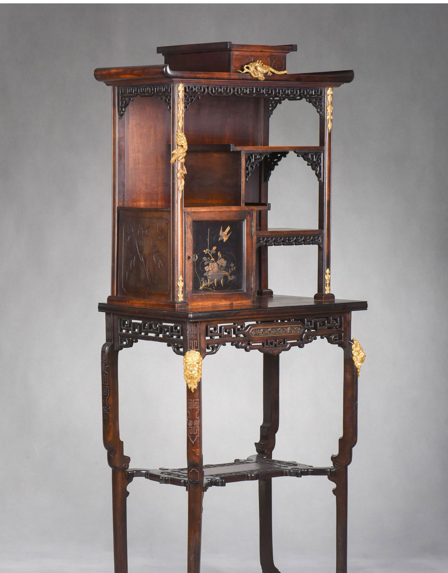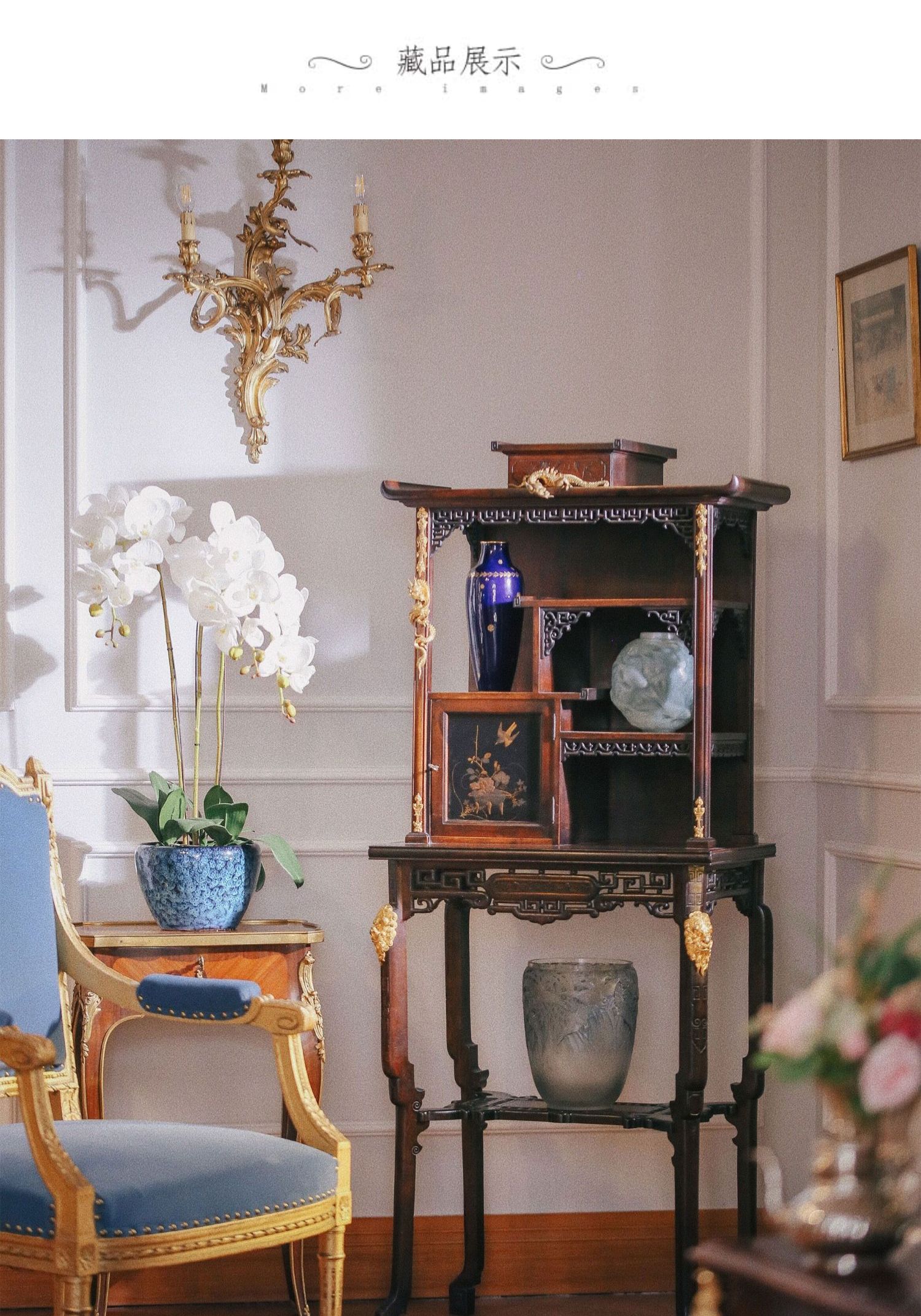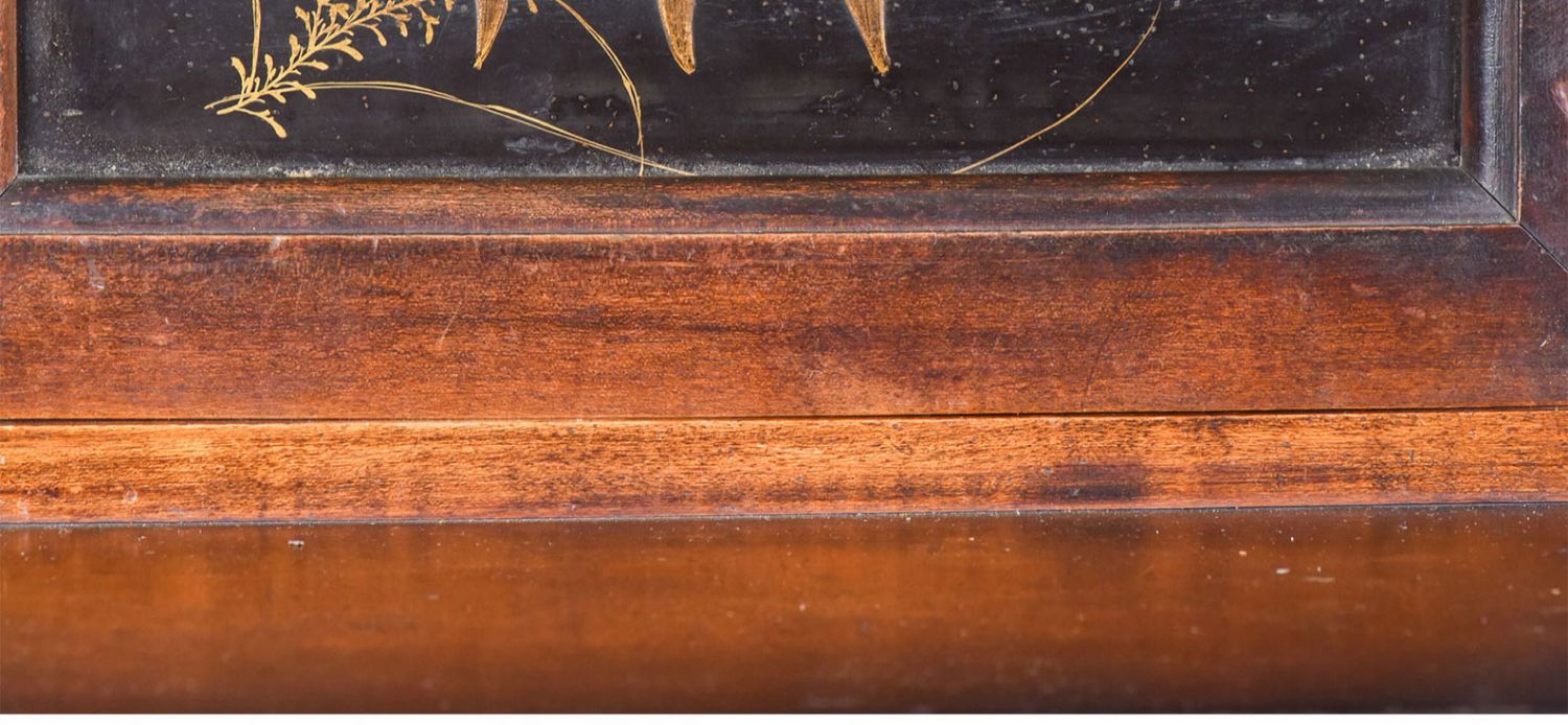 独角鹿西洋古董家具法国出品铜鎏金嵌东方莳绘花鸟图胡桃木立柜