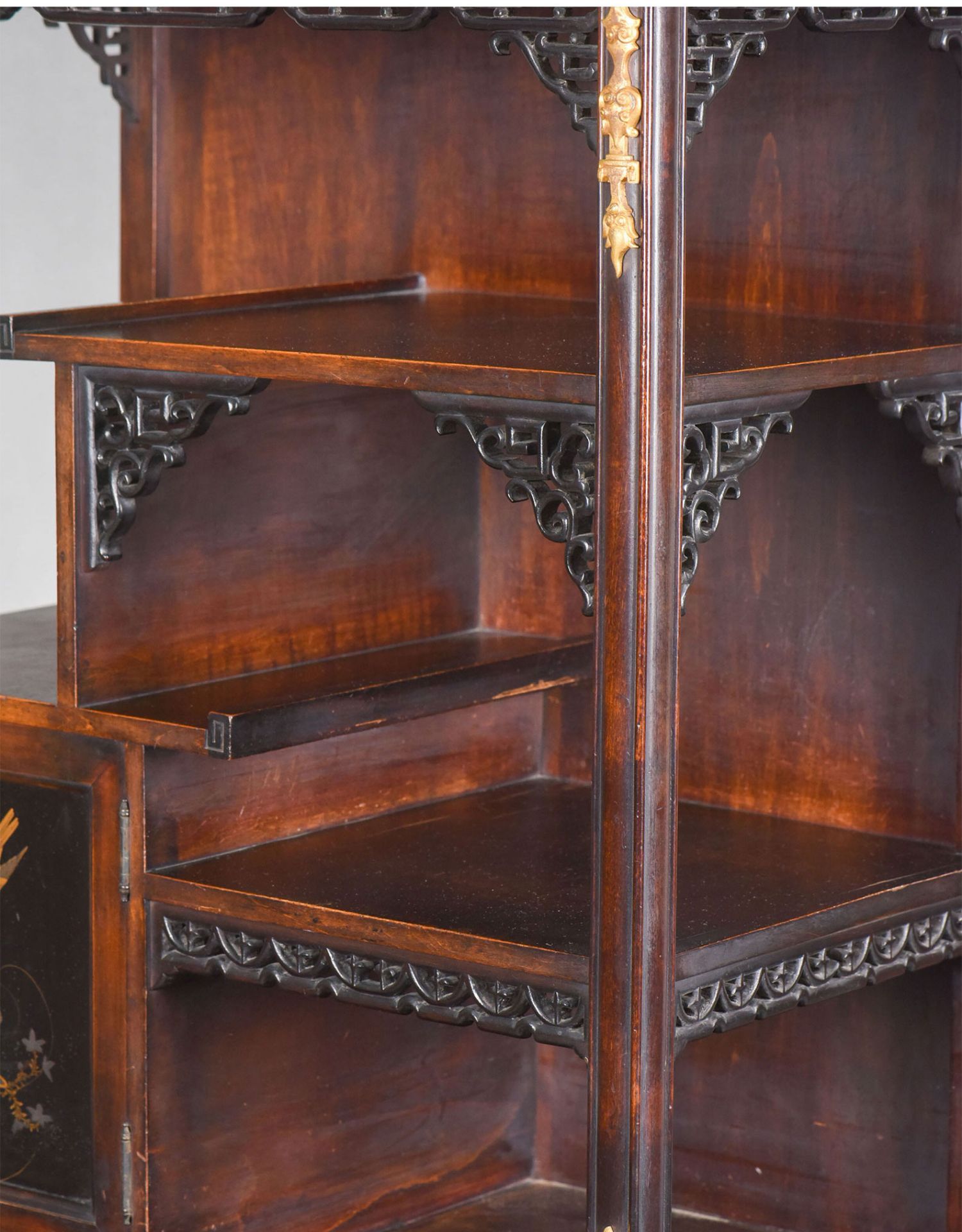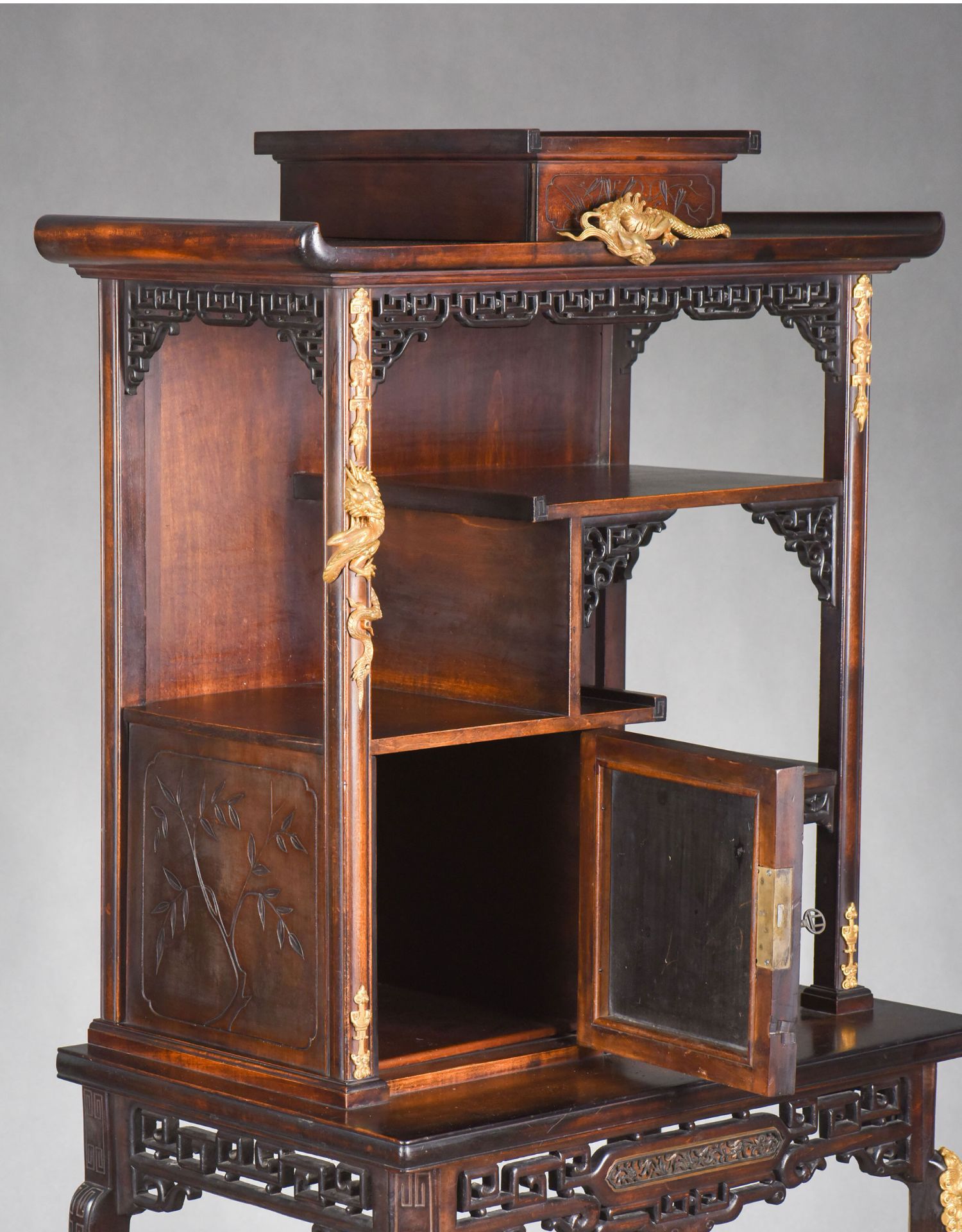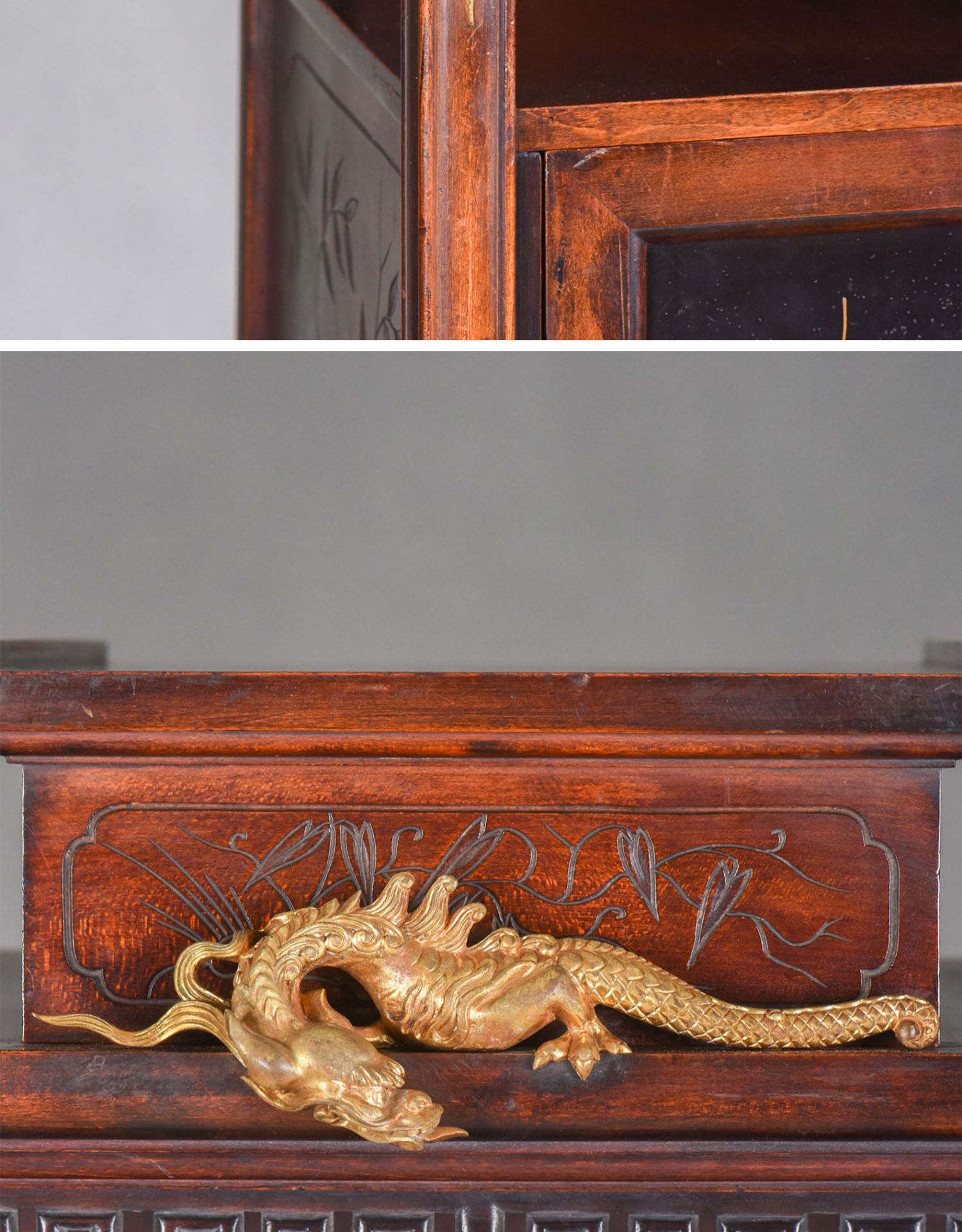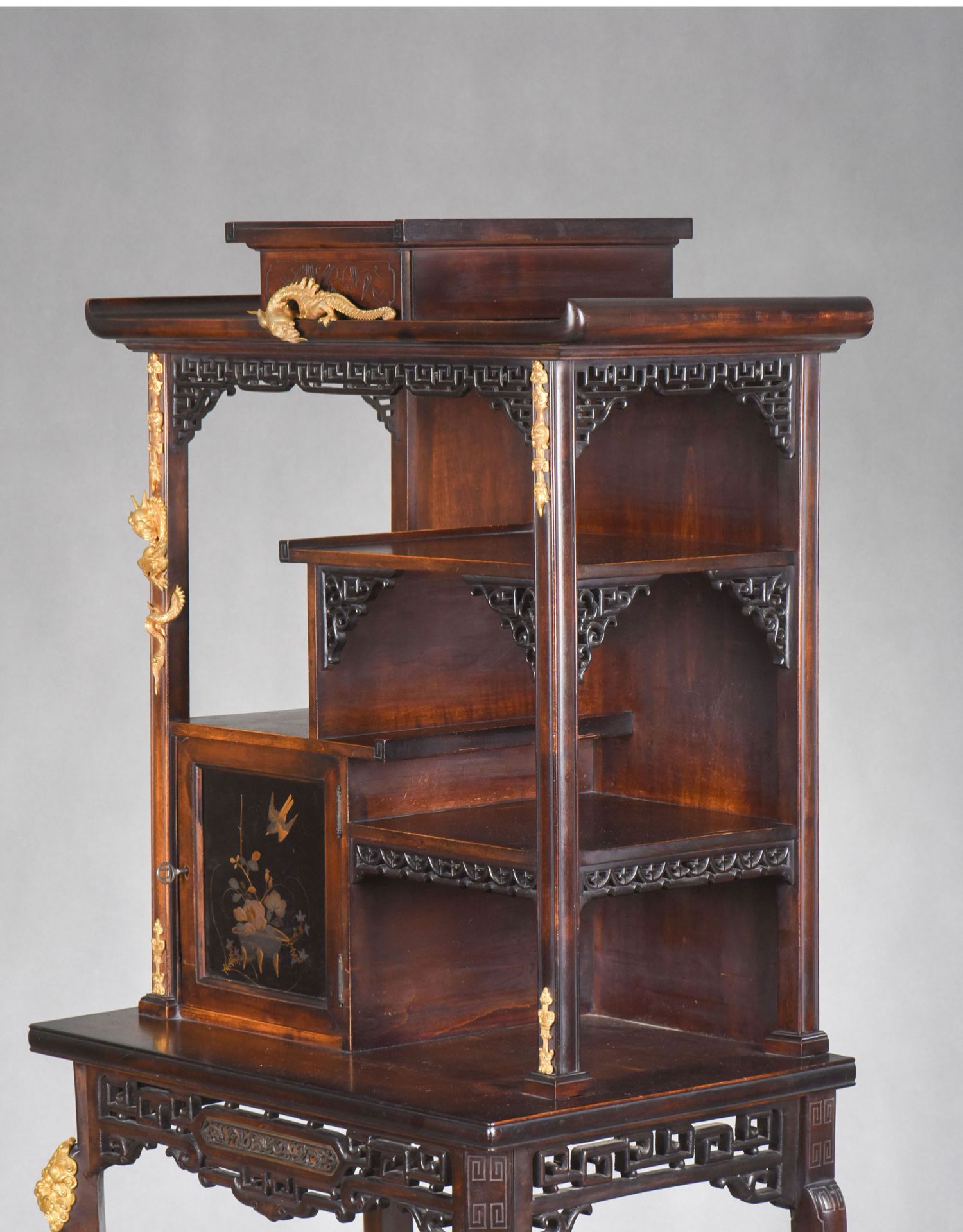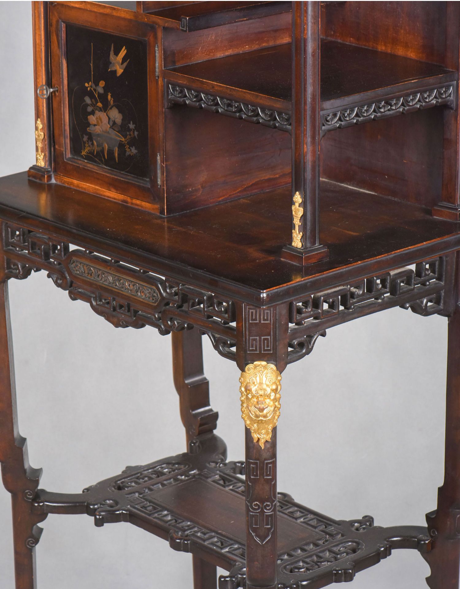 独角鹿西洋古董家具法国出品铜鎏金嵌东方莳绘花鸟图胡桃木立柜
