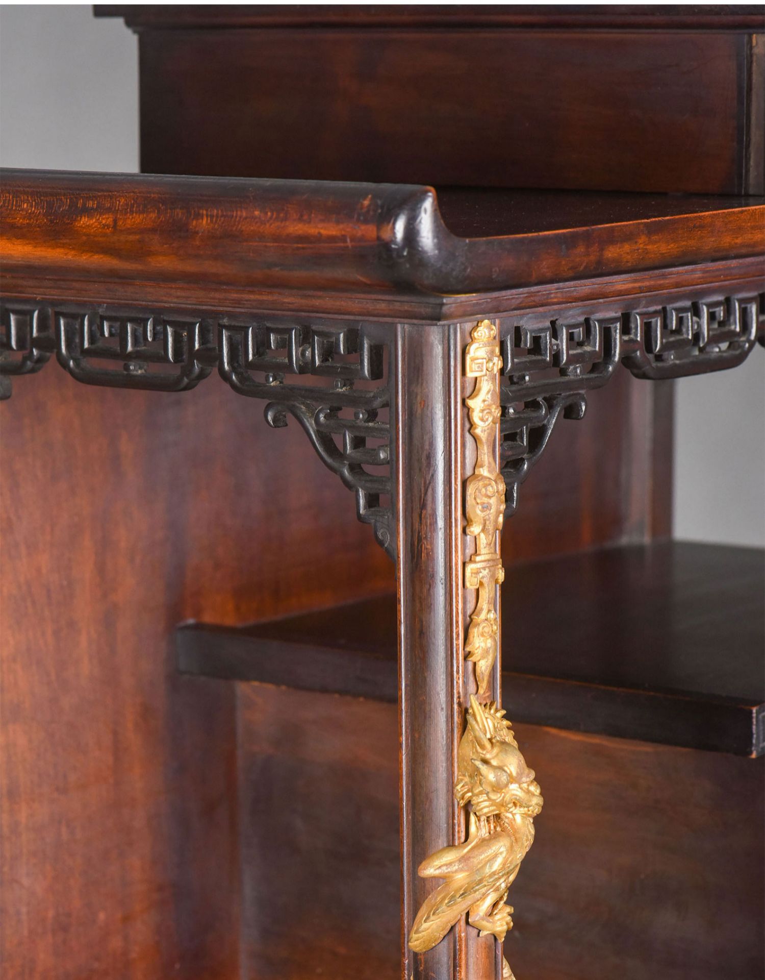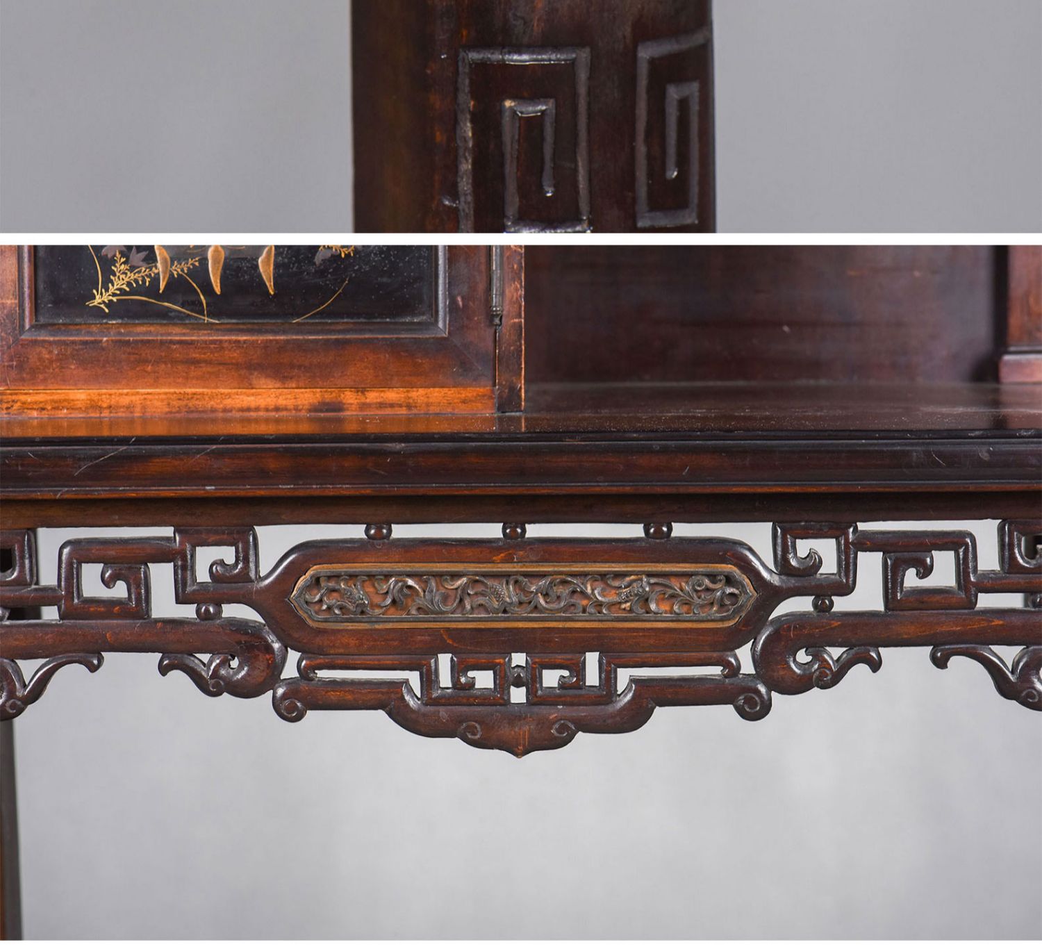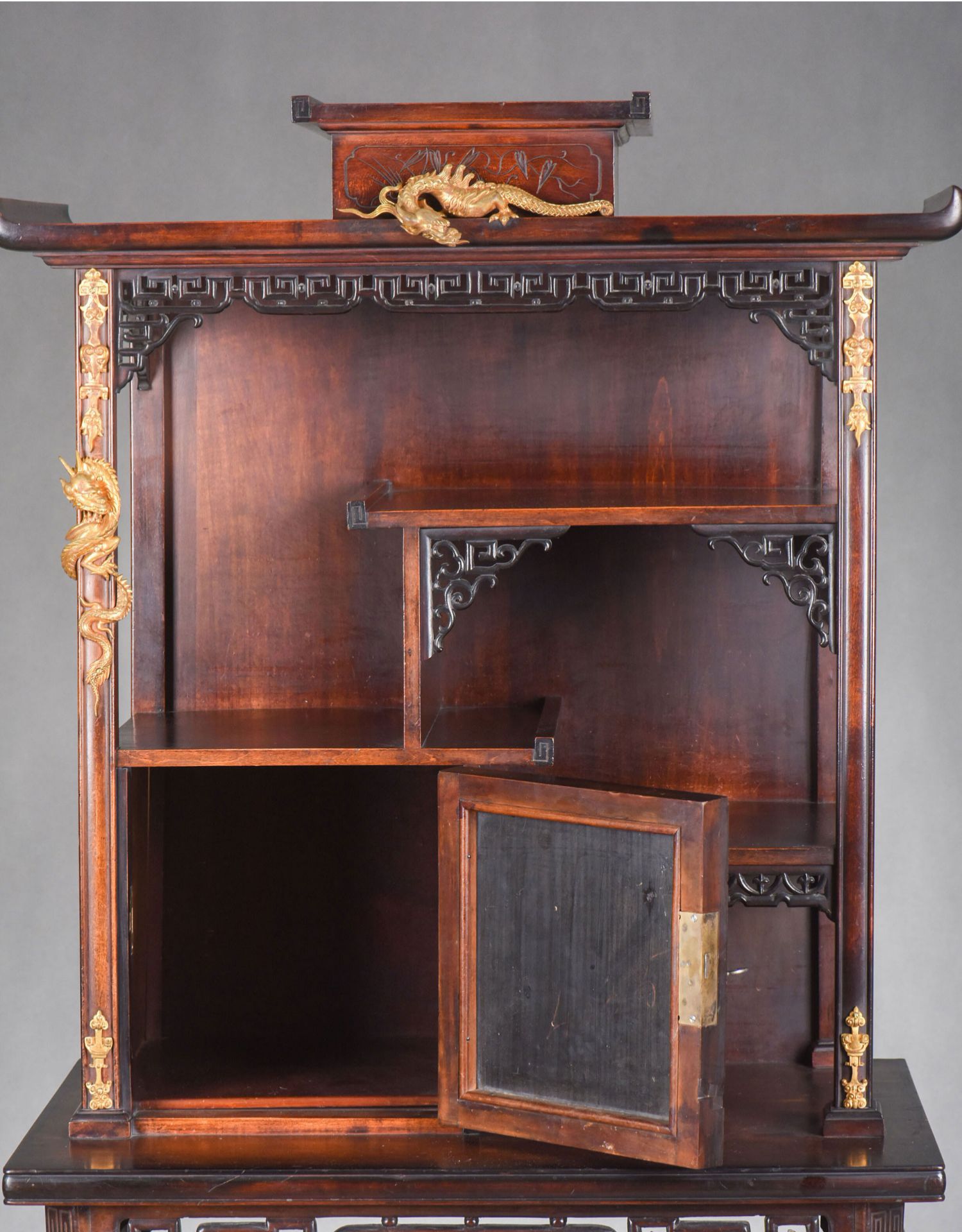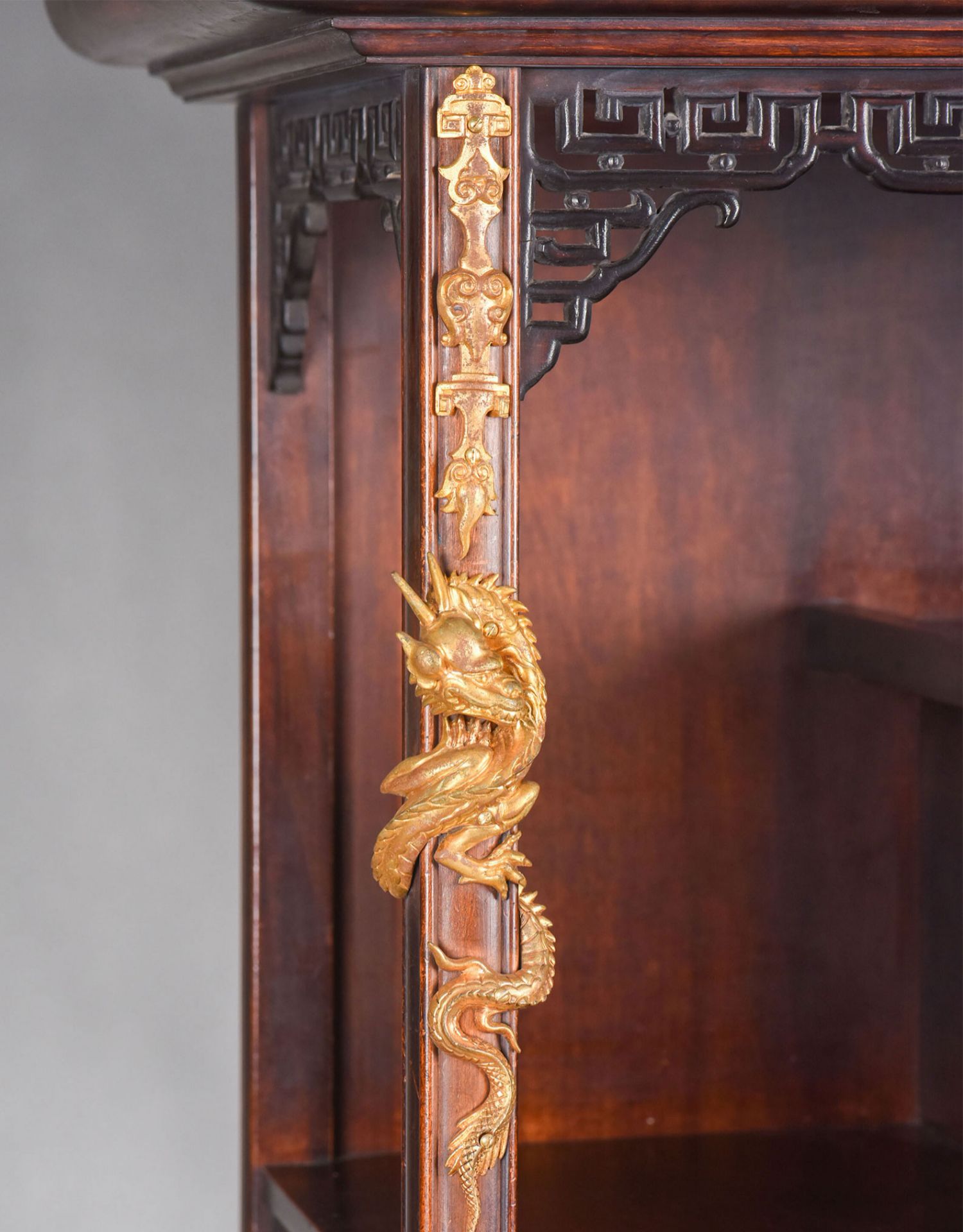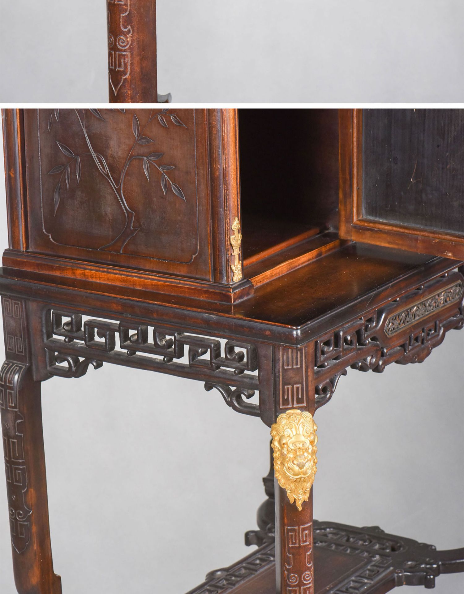 独角鹿西洋古董家具法国出品铜鎏金嵌东方莳绘花鸟图胡桃木立柜