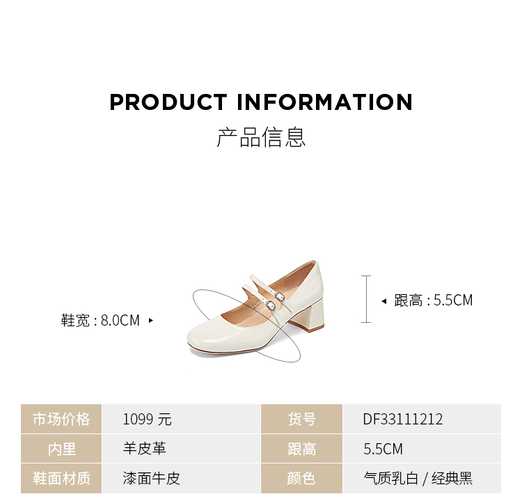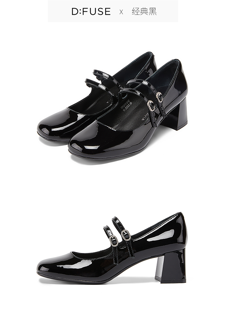 【甜梦少女】Dfuse迪芙斯秋款漆面牛皮方头复古玛丽珍鞋女DF33111212