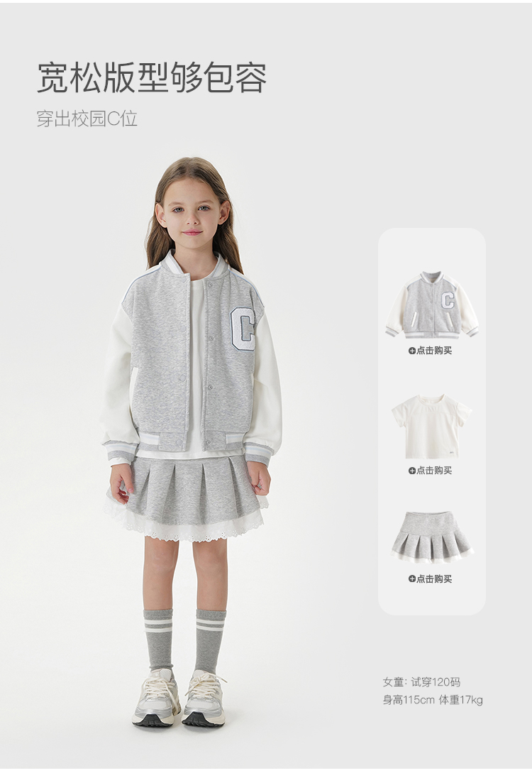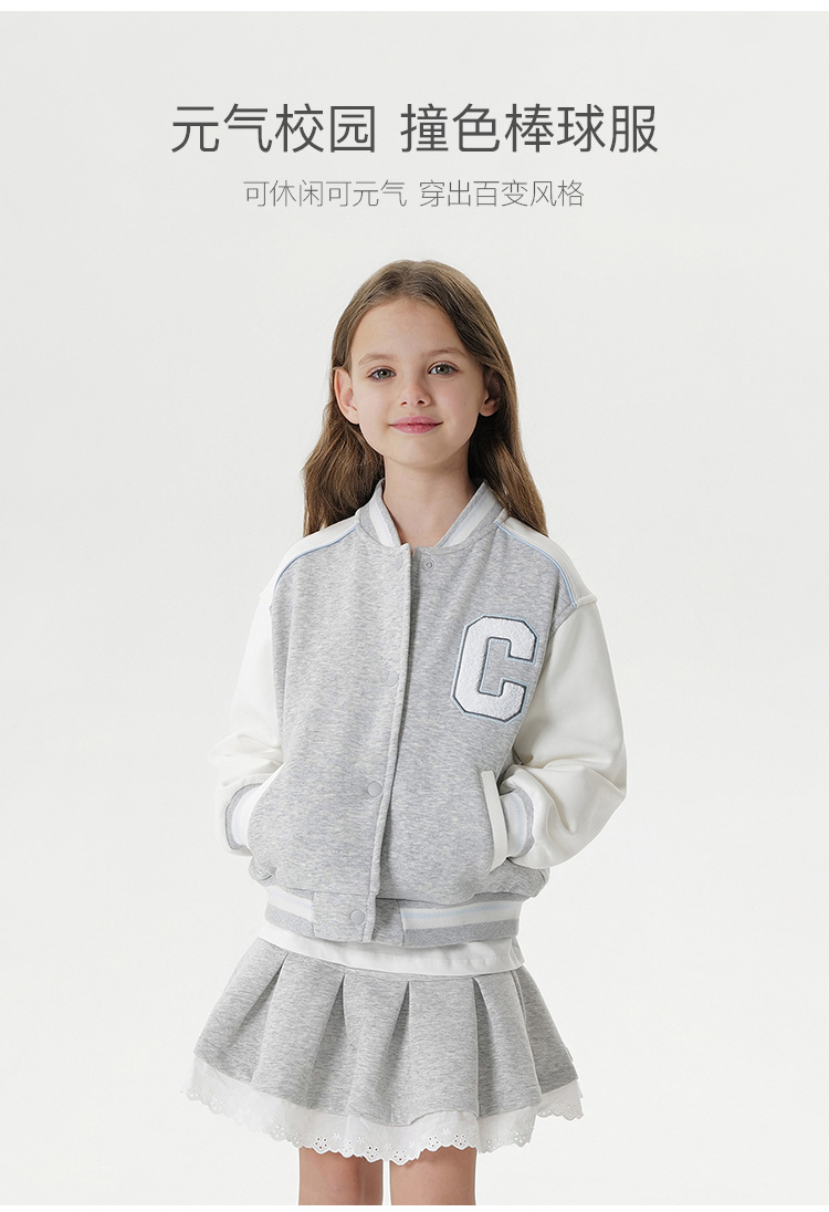 马克珍妮女童元气校园撞色棒球服 儿童外套2025年春装新款250123