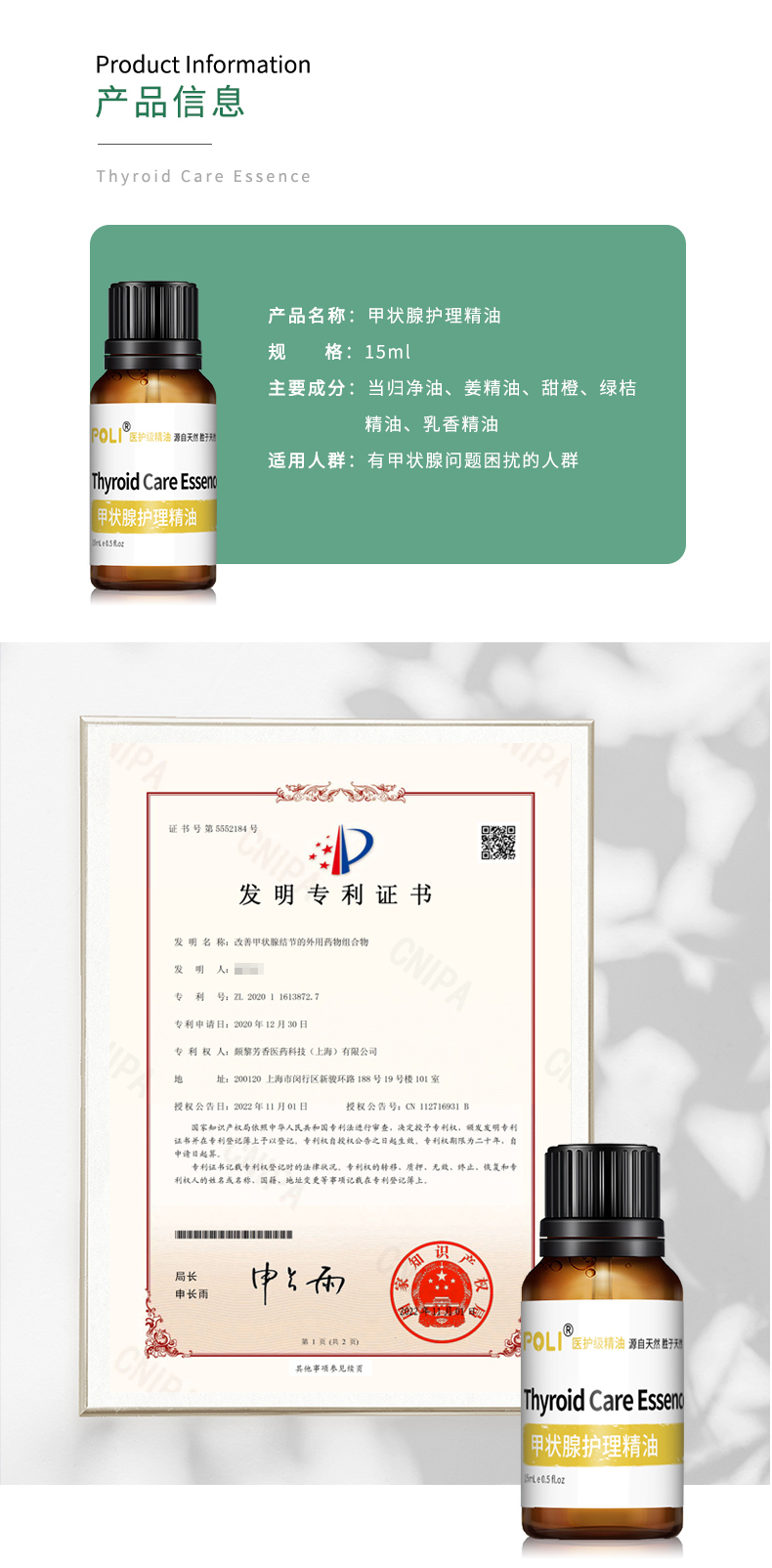 甲状腺护理精油原料 身体按摩发热复方精油 颇黎研发复方精油芳疗