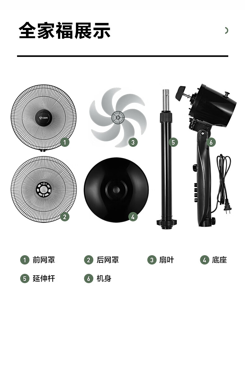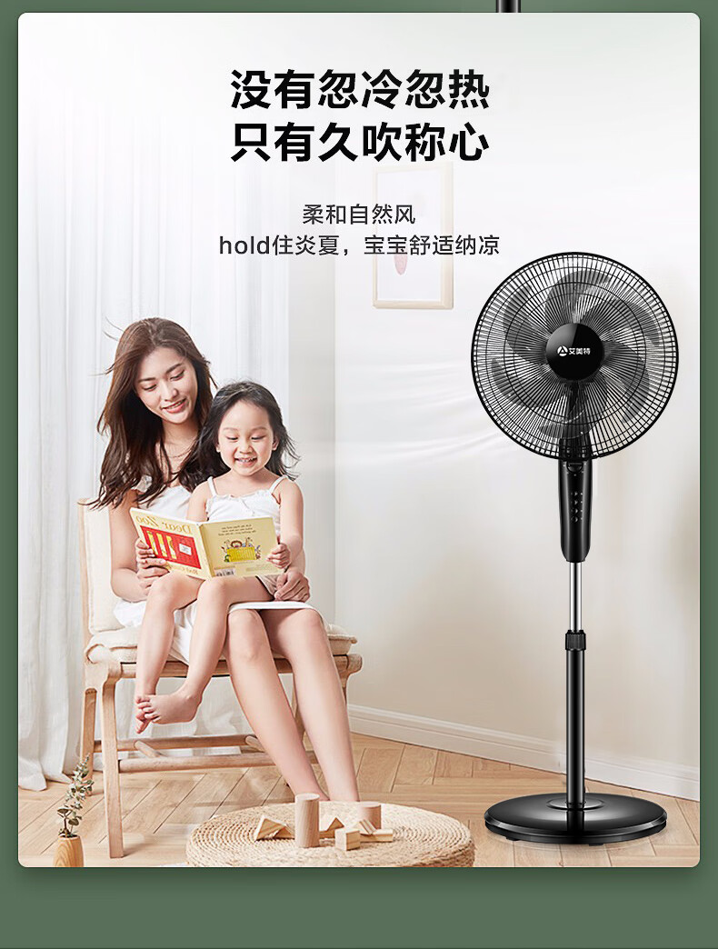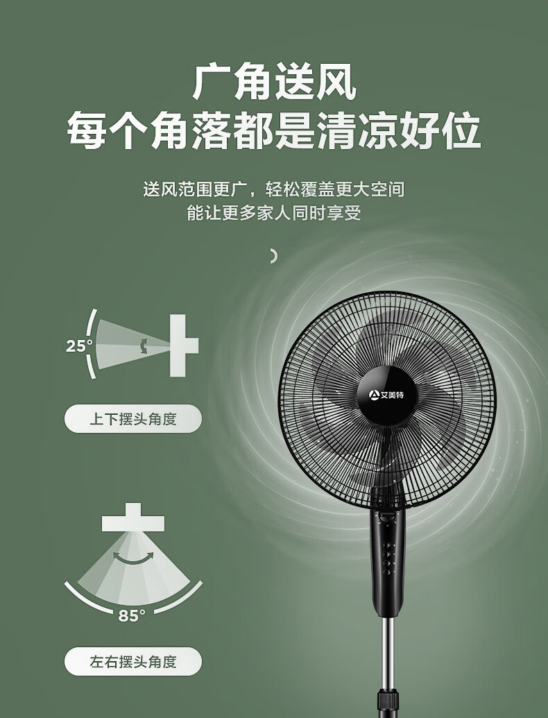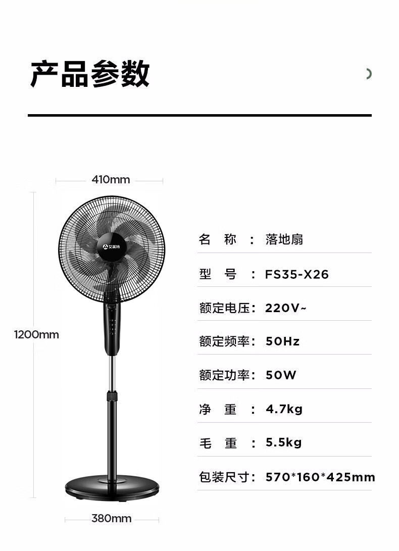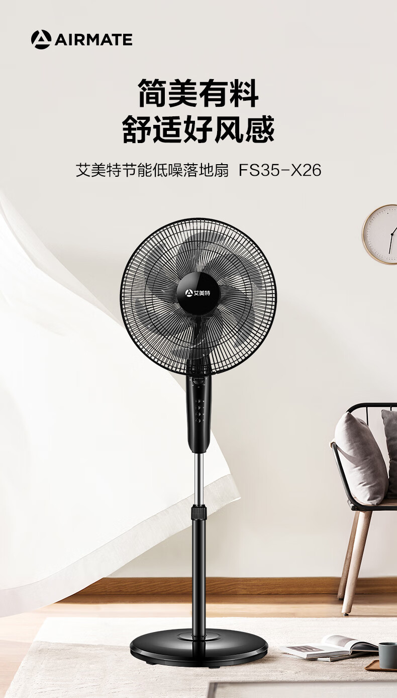艾美特(AIRMATE)大风量家用机械电风扇节能轻音定时落地扇立式家用摇头落地式风扇 FS35-X26