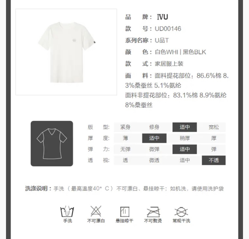 【IVU新品【U品T系列】男士圆领上衣棉桑蚕丝舒适打底衫