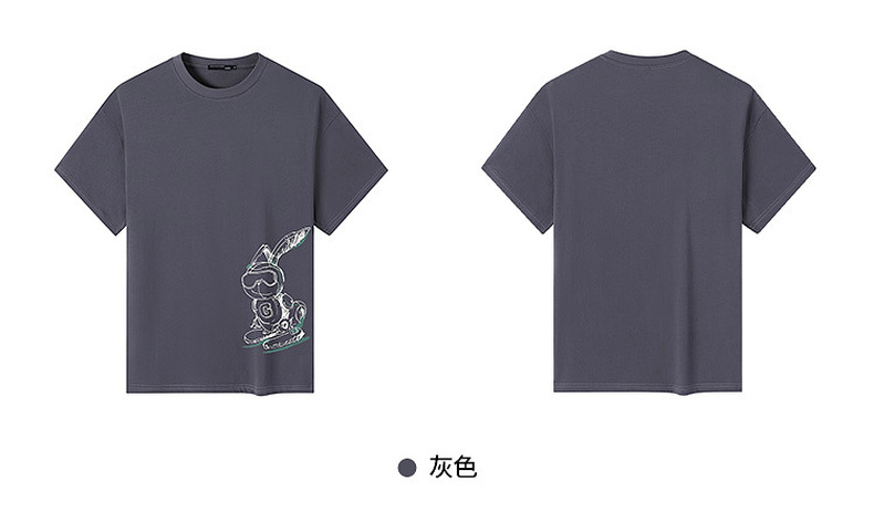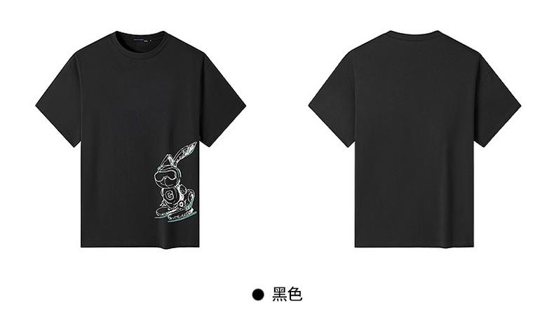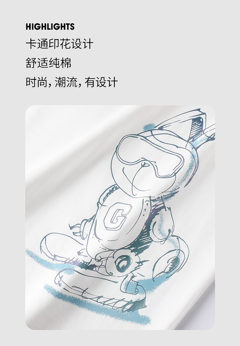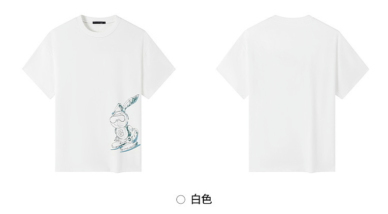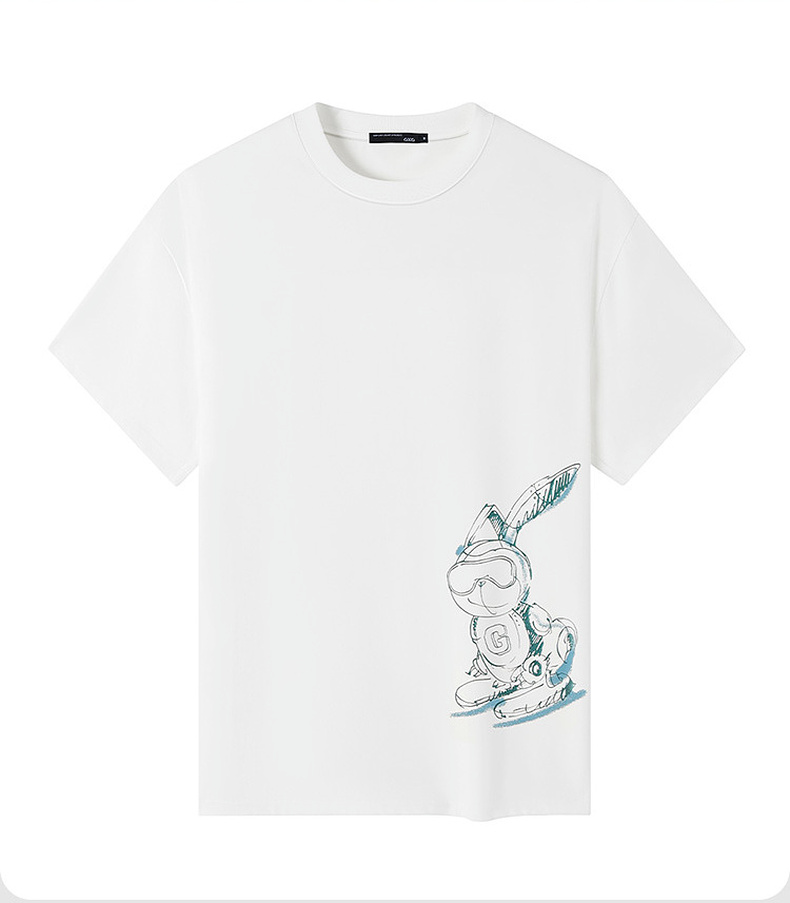 GXG男装【滑板兔子】25夏季时尚手绘宽松圆领男式重磅纯棉短袖t恤K&C