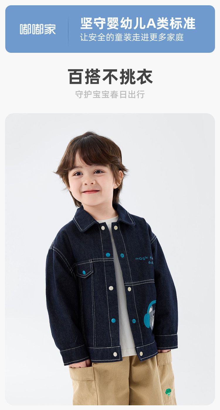 【不易褪色】嘟嘟家儿童外套男童春秋牛仔上衣春装宝宝春季衣服女童新款童装潮T6AWT102