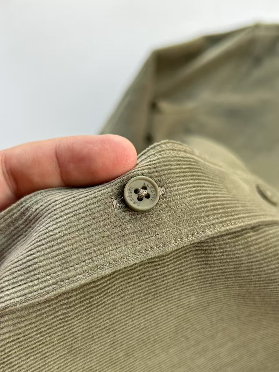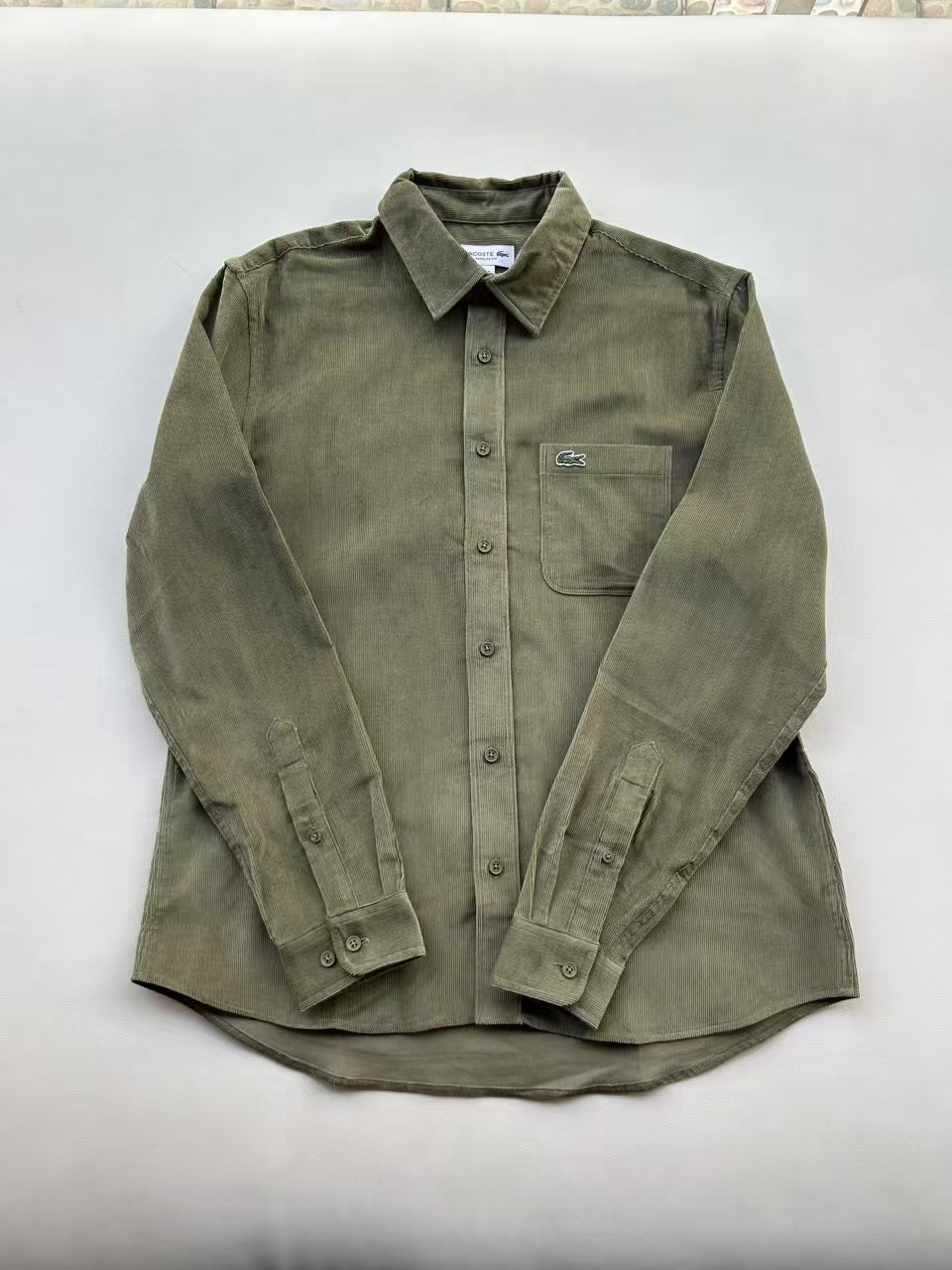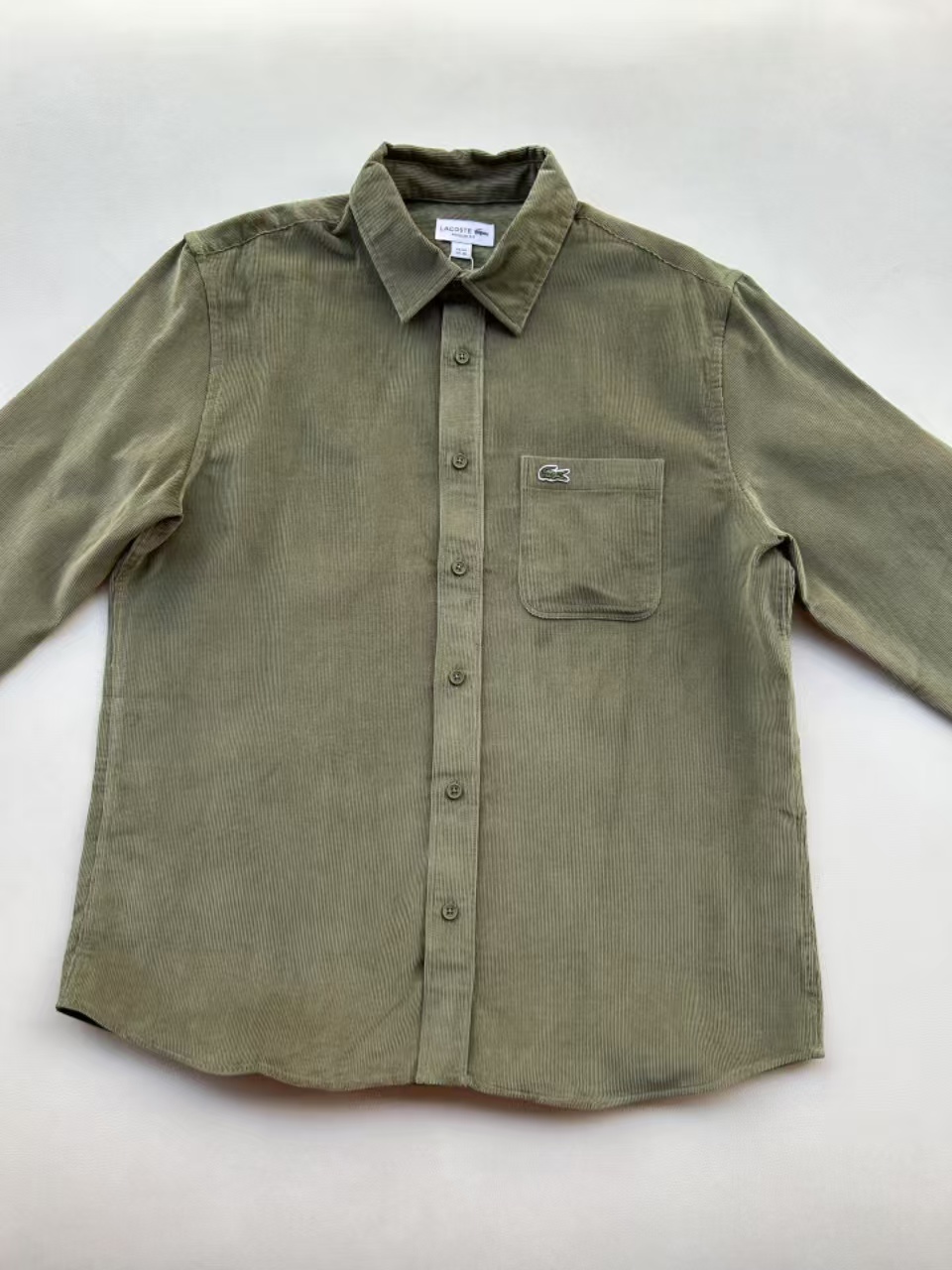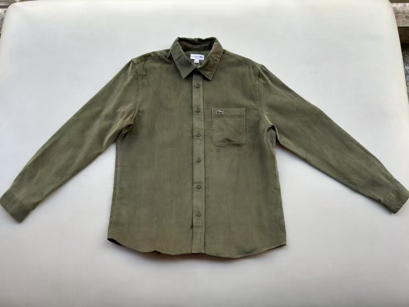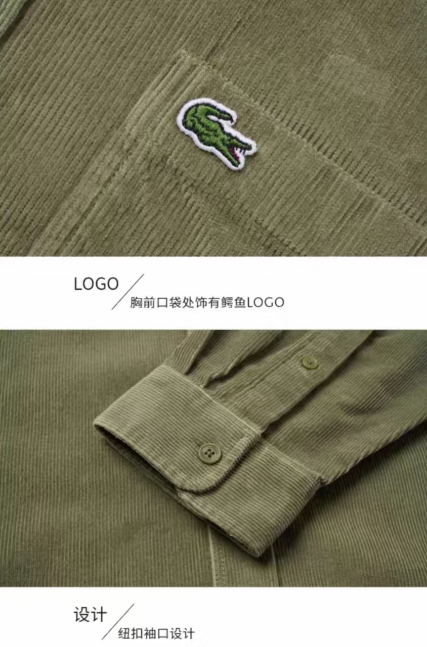 尖领长袖衬衫!宽松版型。纯棉户外面料舒适有透气。正面胸前口袋精致刺绣LOGO。春季可内套T恤当外套穿。休闲百搭。