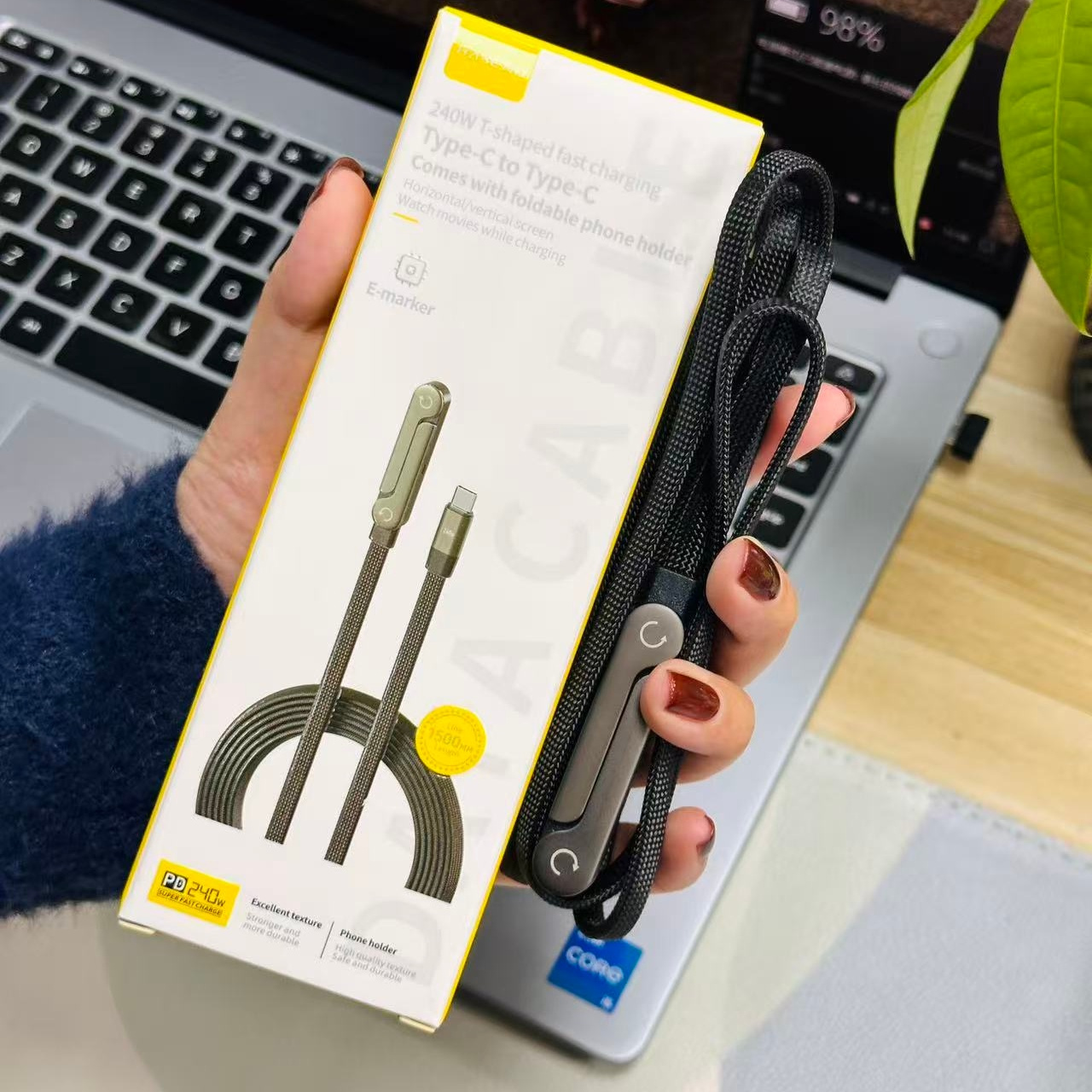 【小来】折叠手机支架闪充数据线,240w闪充,双Type-c接口,适用于多款手机/平板/电脑,可折叠当支架横竖皆可使用!
