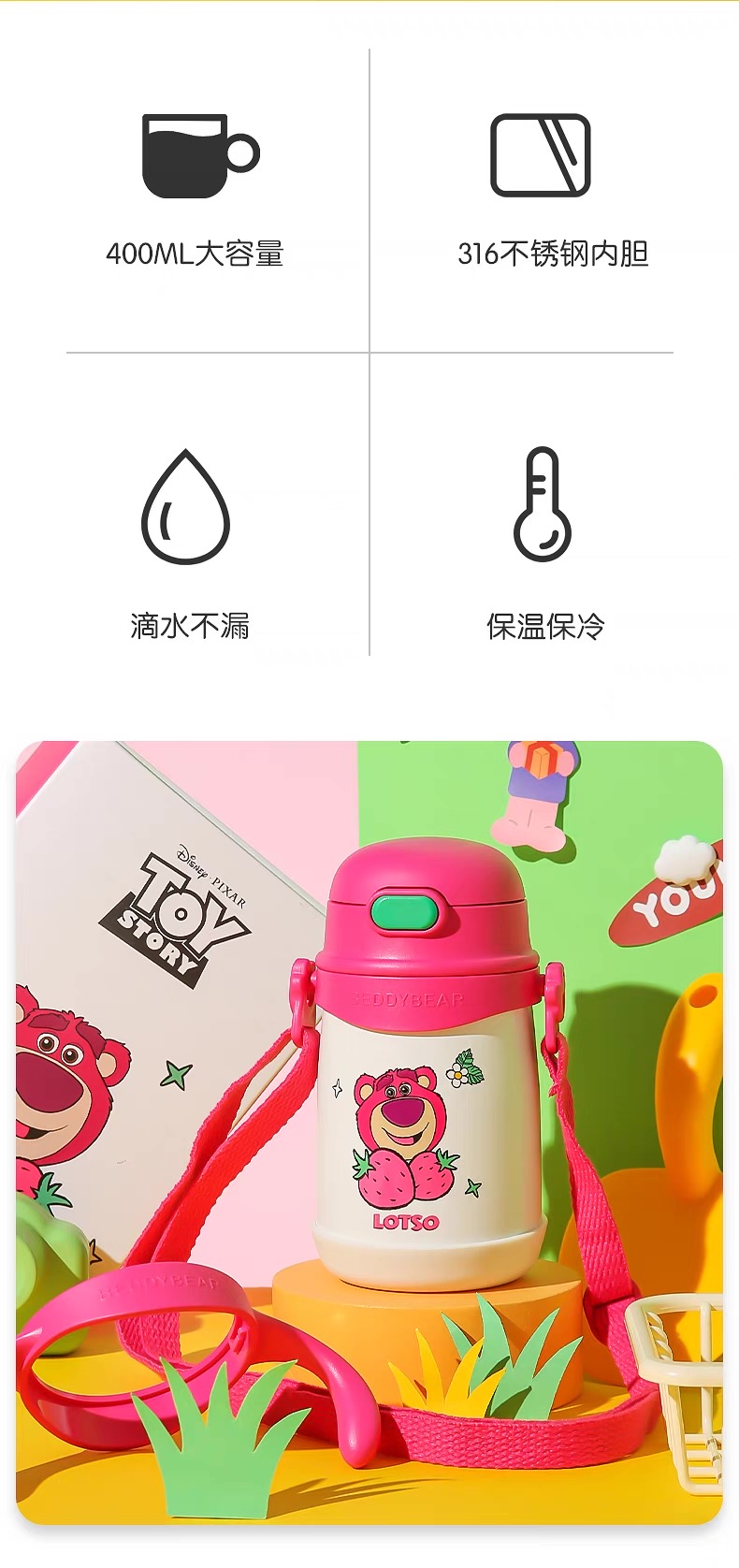 【品牌直发】【杯具熊迪士尼草莓熊联名系列】 学饮杯儿童杯运动杯保温杯 塑料杯冷萃杯双饮杯咖啡随手杯