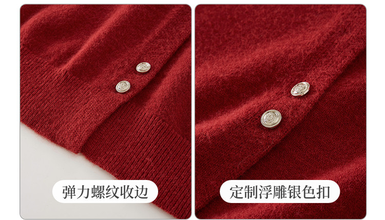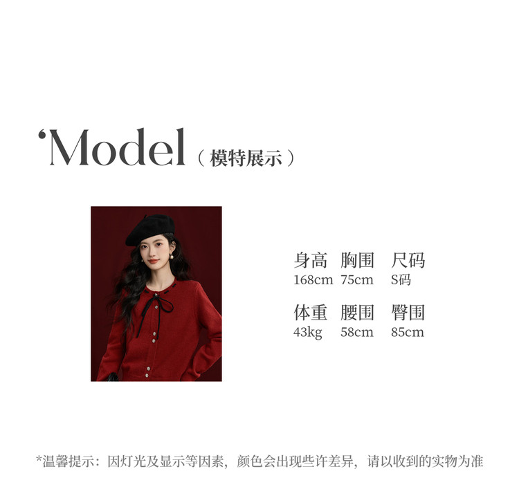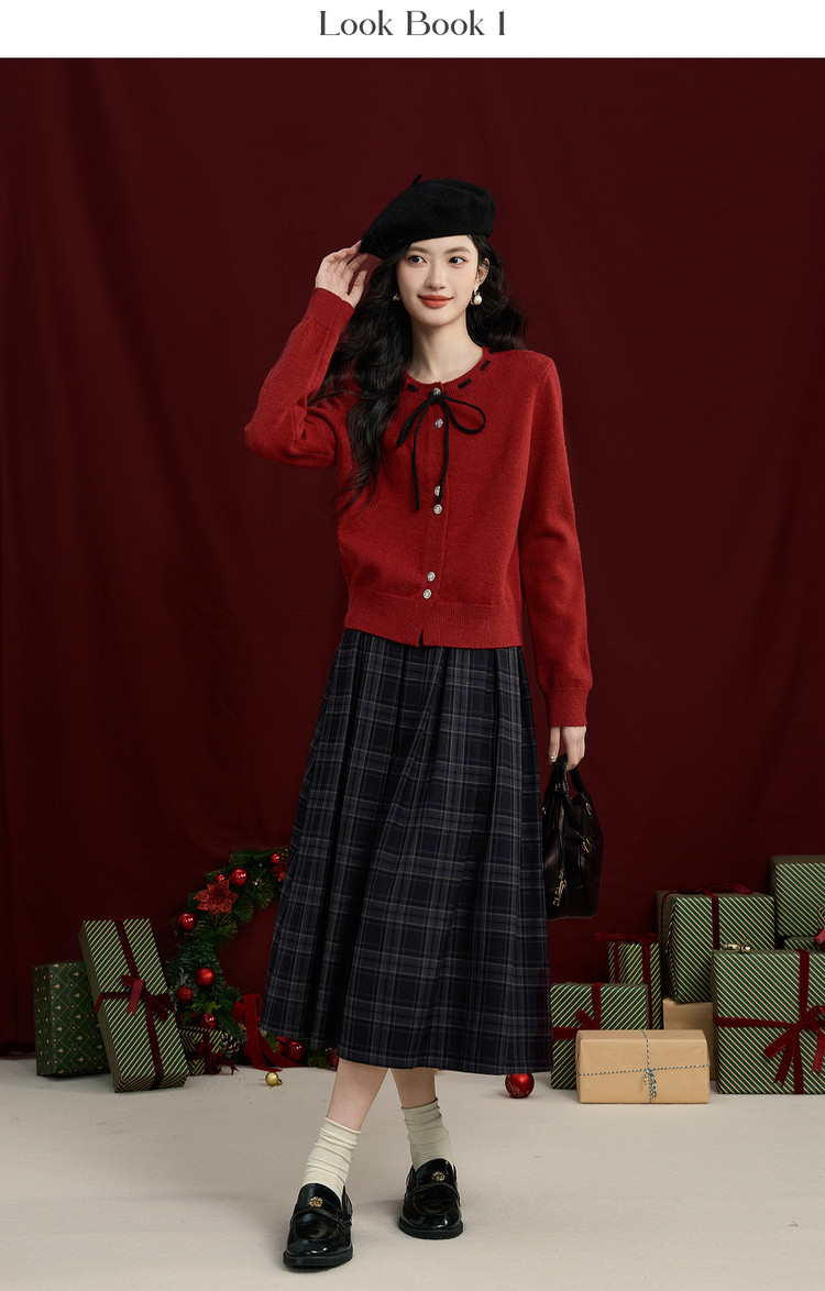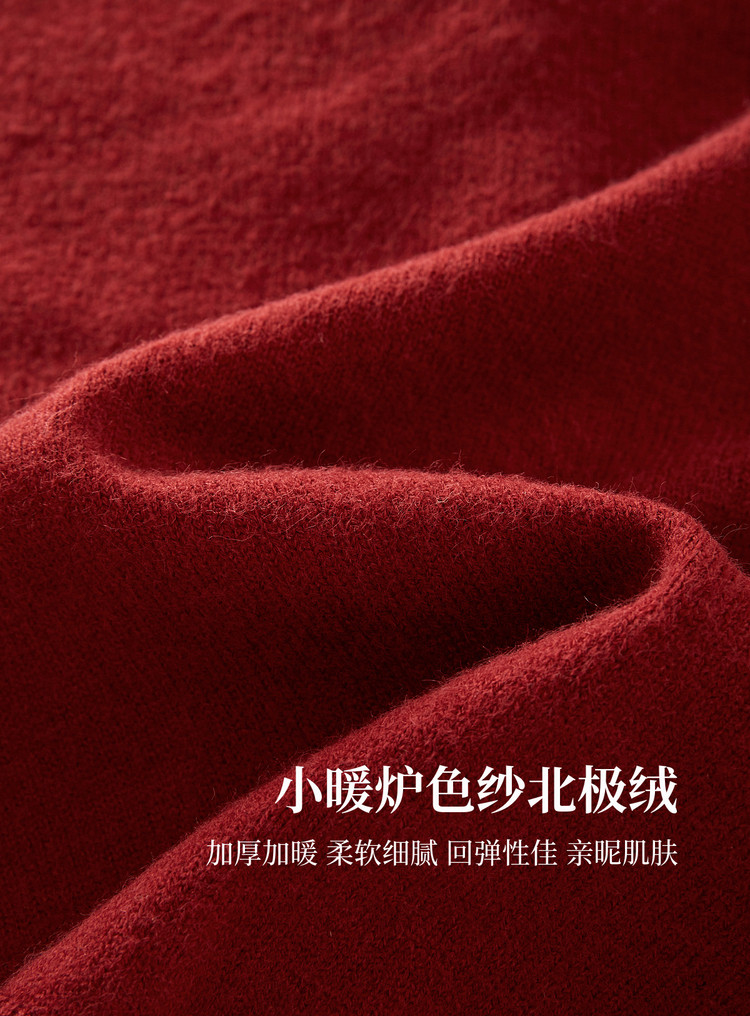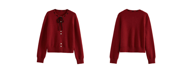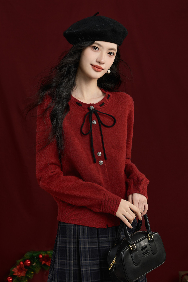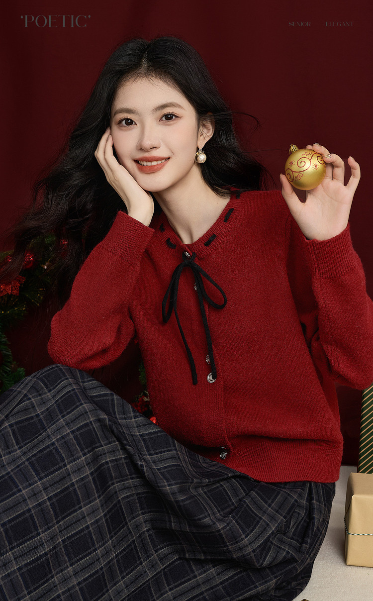 【12/31新品】熙世界氛围感本命年红色毛衣女25年秋冬新款系带圆领长袖针织开衫