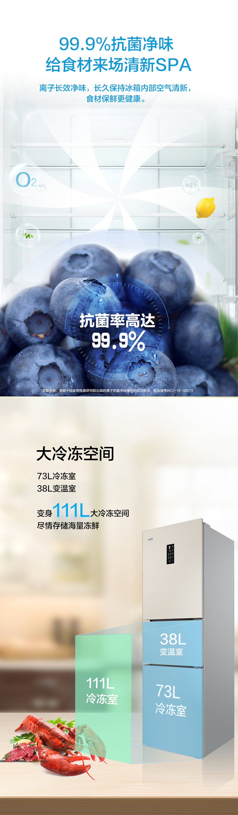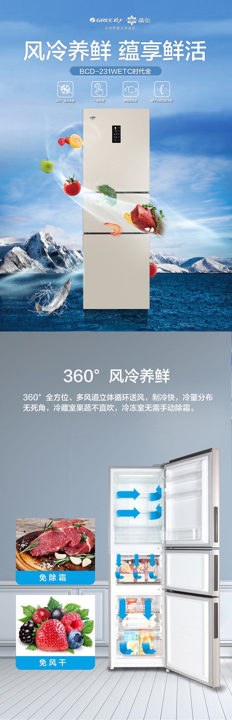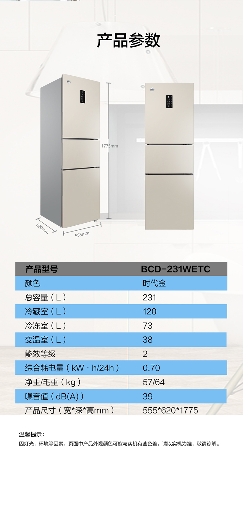 格力晶弘冰箱 三门 家用风冷无霜节能电冰箱静音 BCD-231WETC时代金
