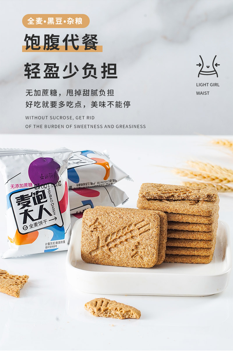 「全麦粗粮!高饱腹感」全麦杂粮粗粮饼干黑豆魔芋饼干早晚饼干休闲小零食品